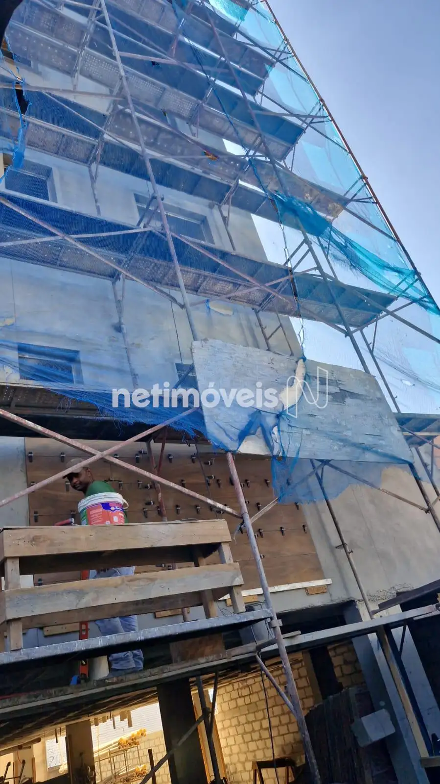 Prédio em fase de acabamento, sobre pilotis, revestido em textura e cerâmica, com elevador, água e gás individualizados.