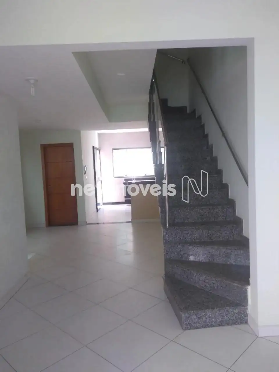 Casa geminada com 3 quartos, 2 banheiros e um banheiro social, sala conjugada com copa e cozinha e vaga de garagem.