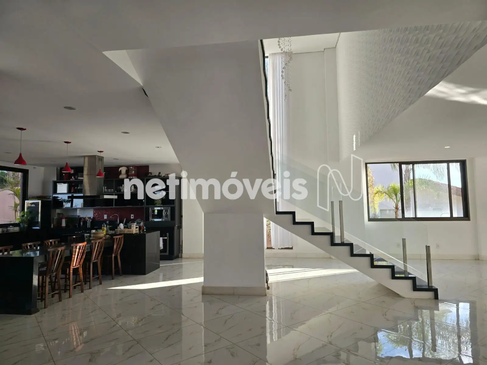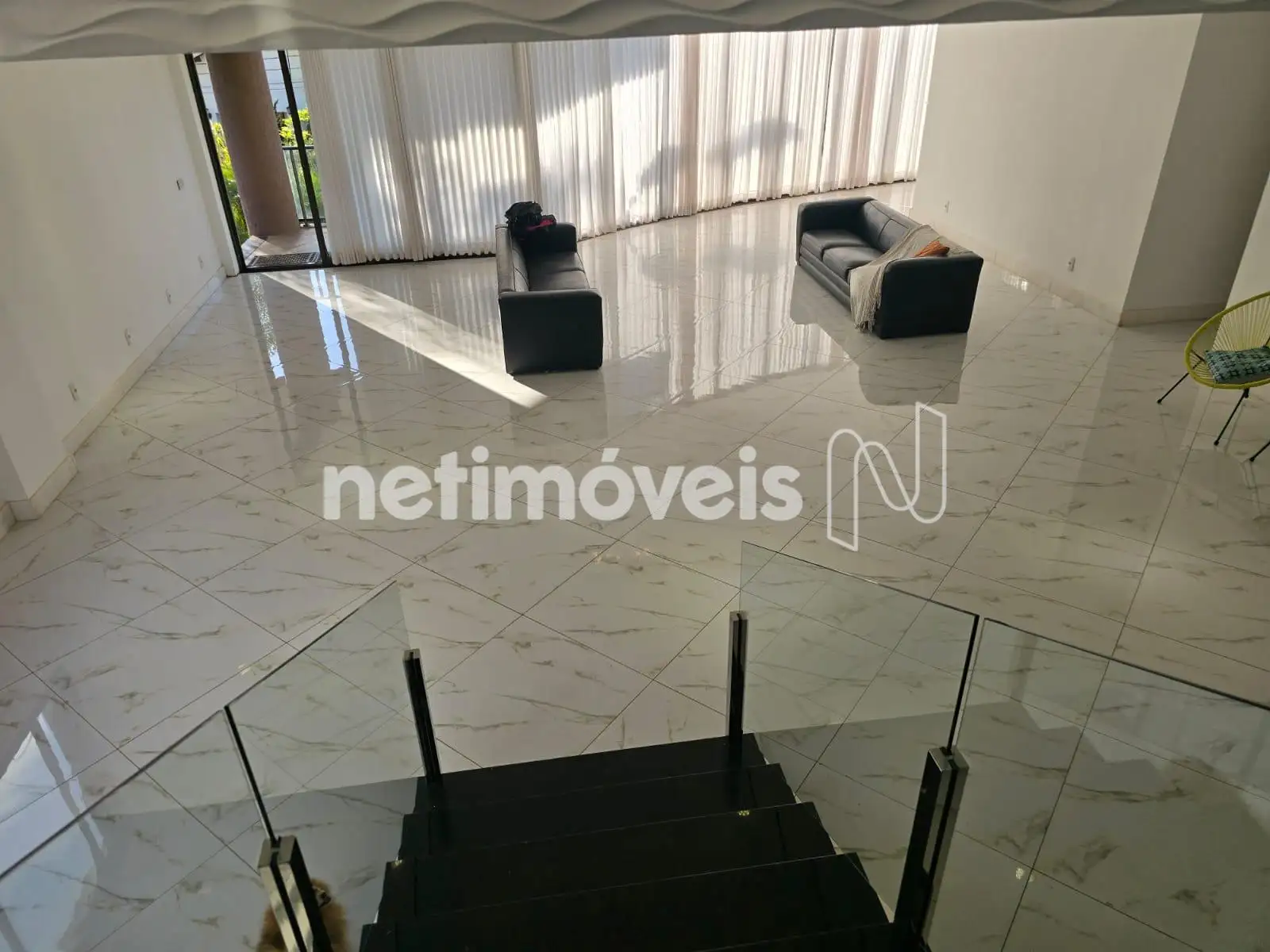 - Sala em parede de vidro para 04 ambientes em conceito aberto, com porcelanato