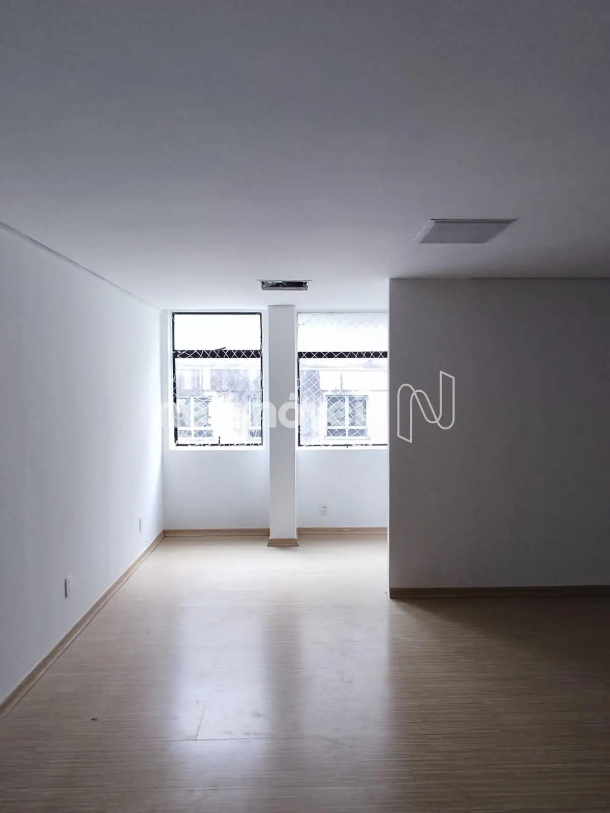 - Sala com aproximadamente 52,32m², piso laminado e pintura nova;