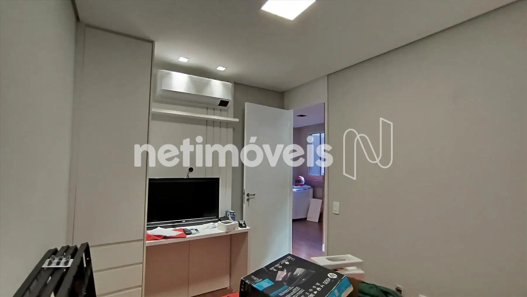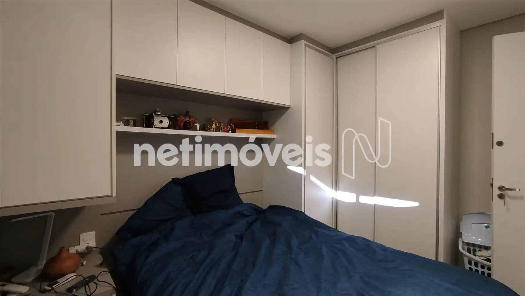 Armários nos dois quartos, com painel integrado;