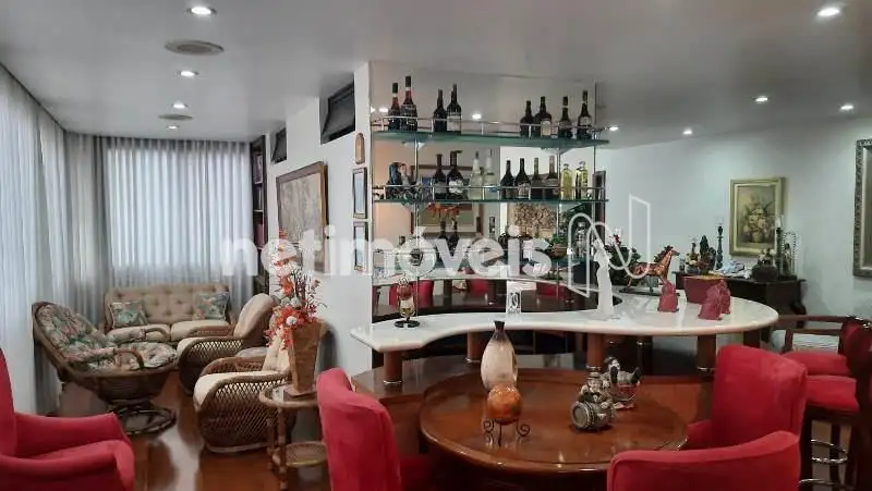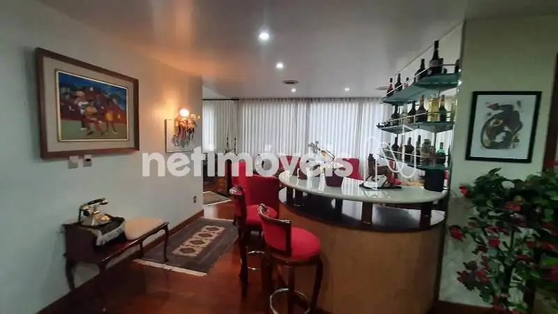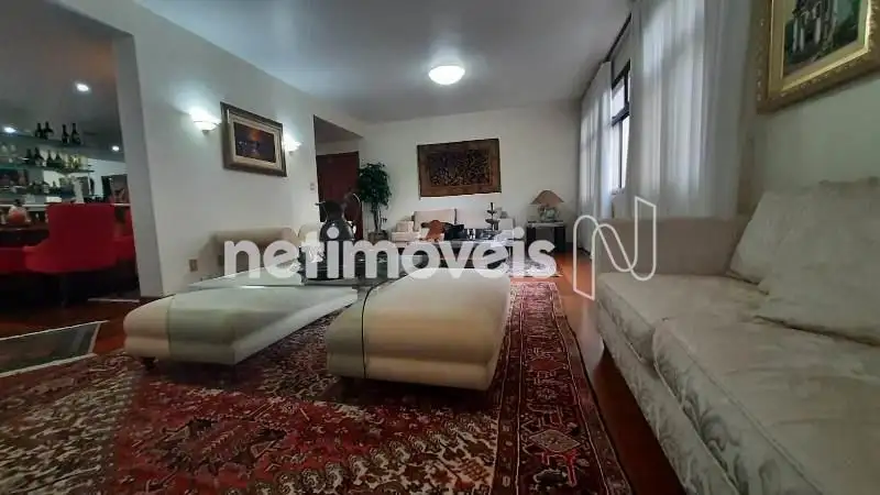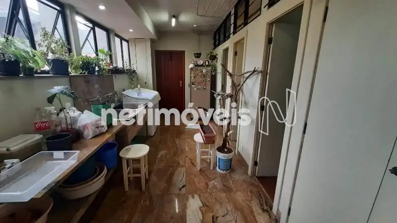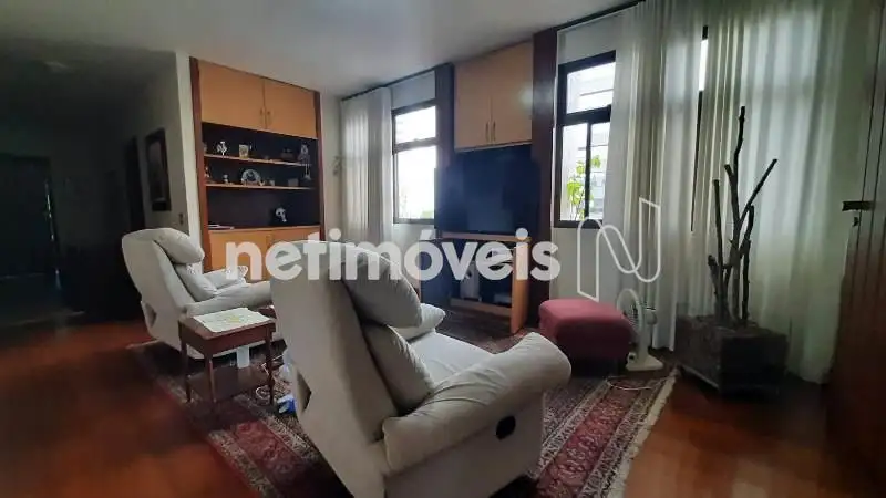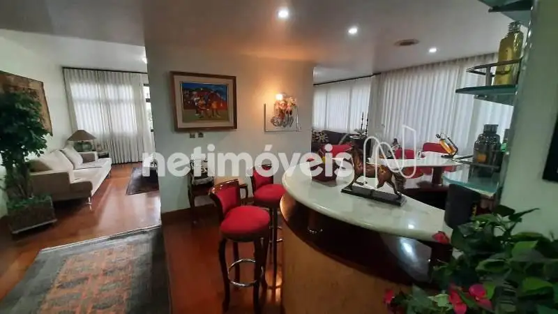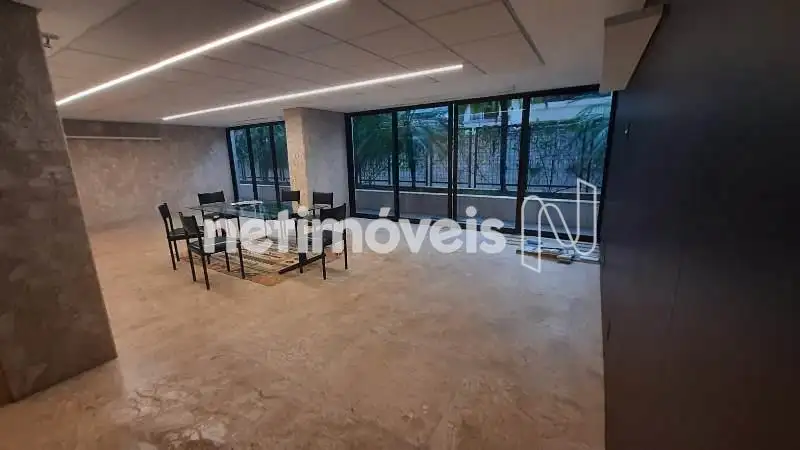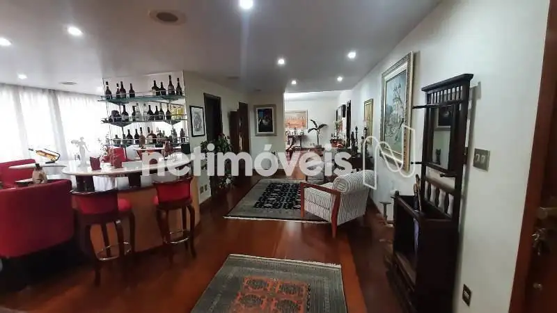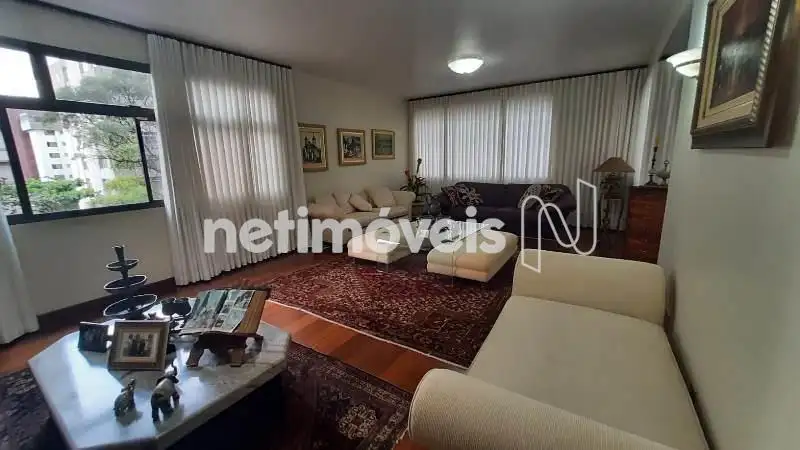 4 amplas salas interligadas com piso em tábua corrida e lavabo.