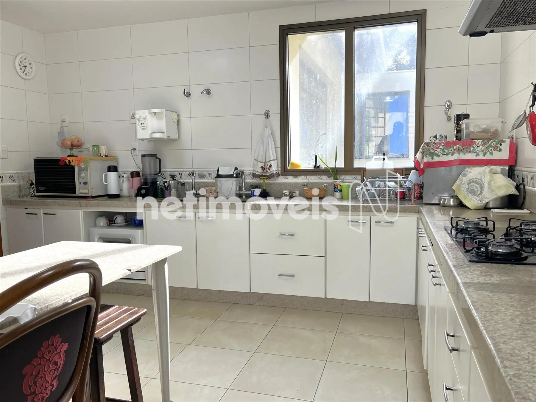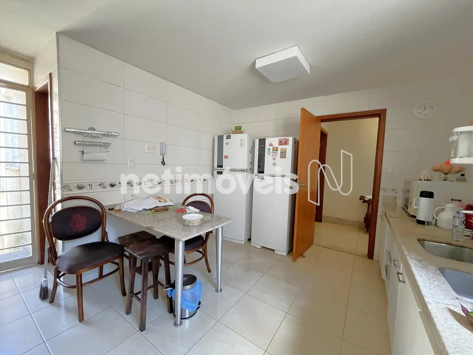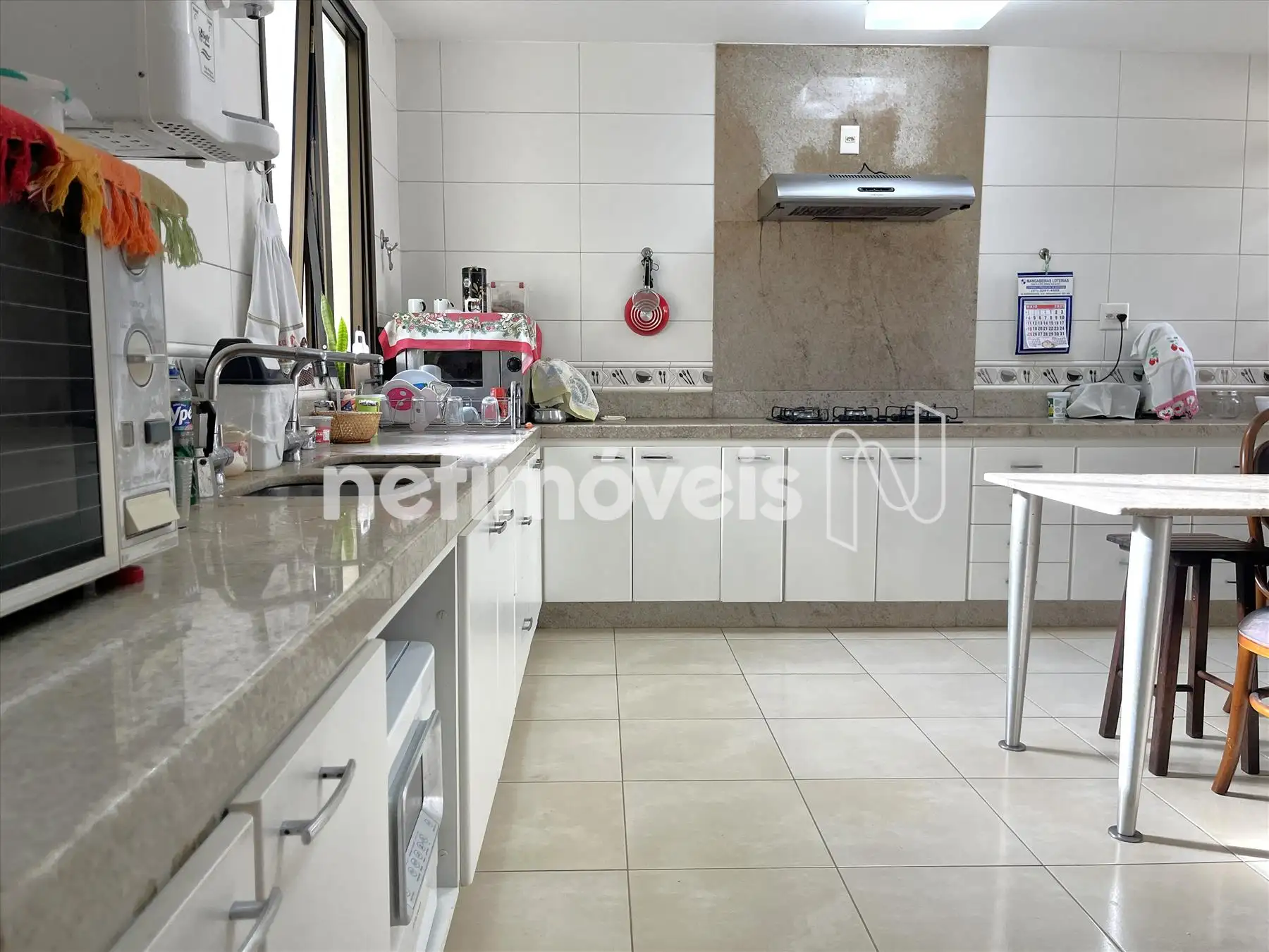 Parte intima preservada, rouparia no corredor interno de acesso aos quartos do piso superior onde estão 3 das 4 suítes sendo duas delas com closet, banheiros com armários sob as bancadas, águas dos banheiros aquecidas por aquecimento solar; Elevador e escada interna para o piso inferior onde se encontra mais uma grande suíte, acesso a garagem, a área de serviços, DCE, quintal com horta e plantas; garagem para 5 carros livres, paralelos e cobertos, podendo caber até 10 carros, 3 depósitos e jardim. Voltando ao piso superior, cozinha bastante ampla com copa, grande bancada de granito com muitos armários sob as bancadas, despensa.