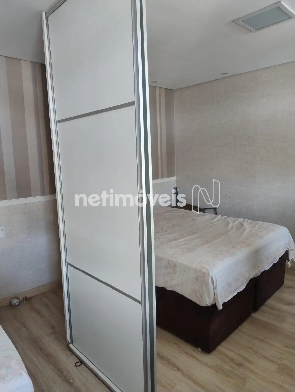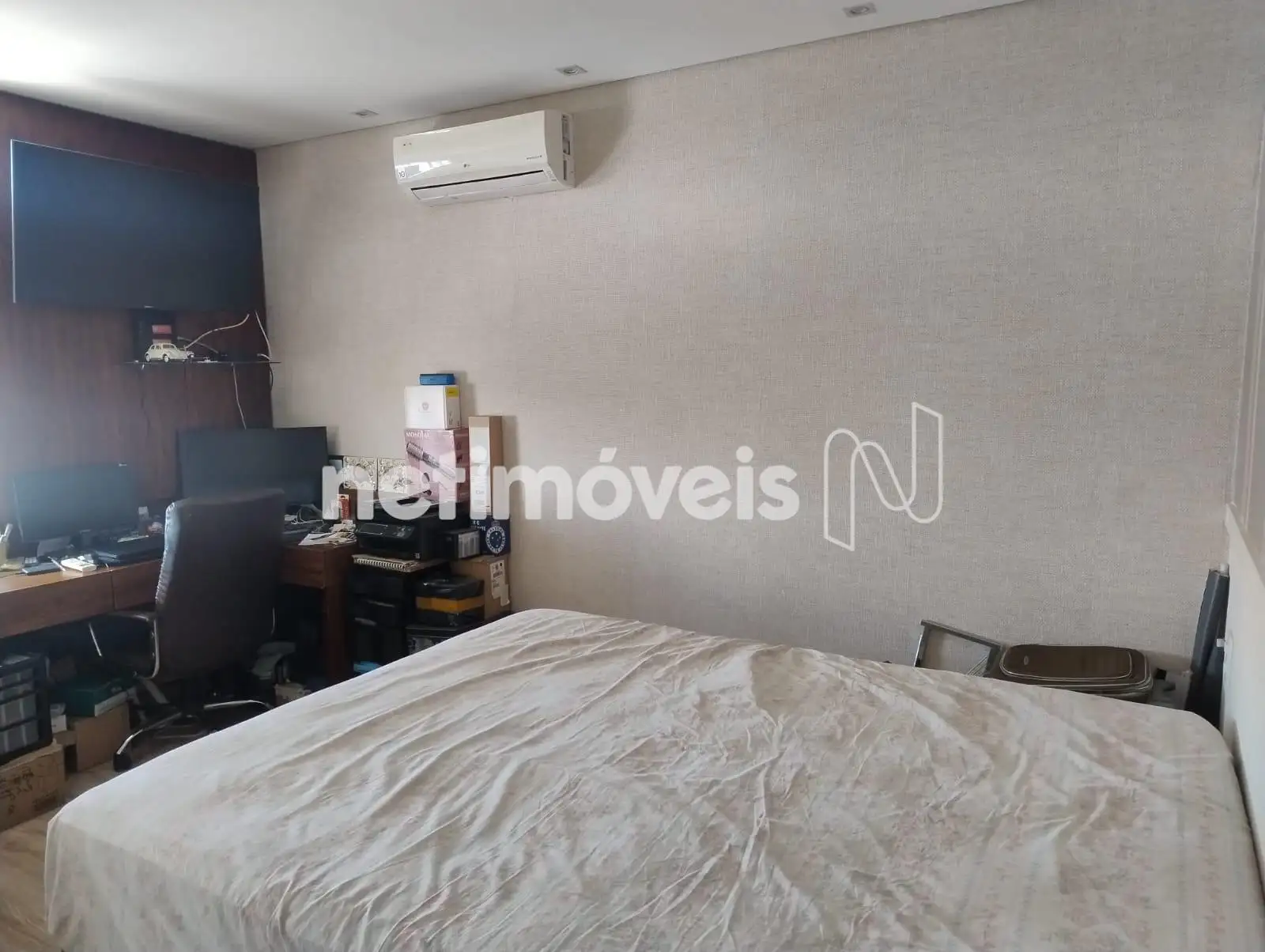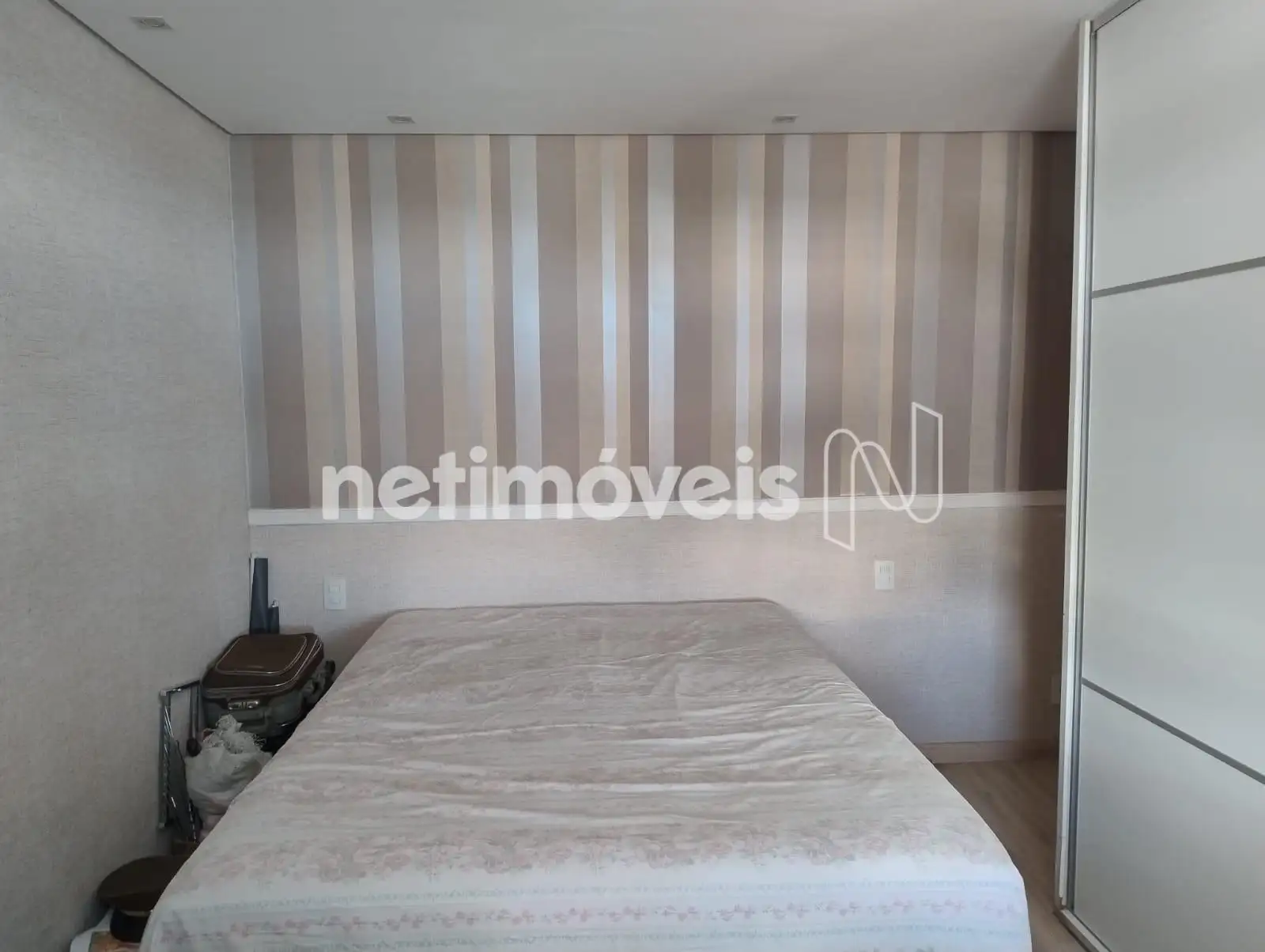 Quartos com armários, sendo o quarto de casal equipado com ar condicionado.