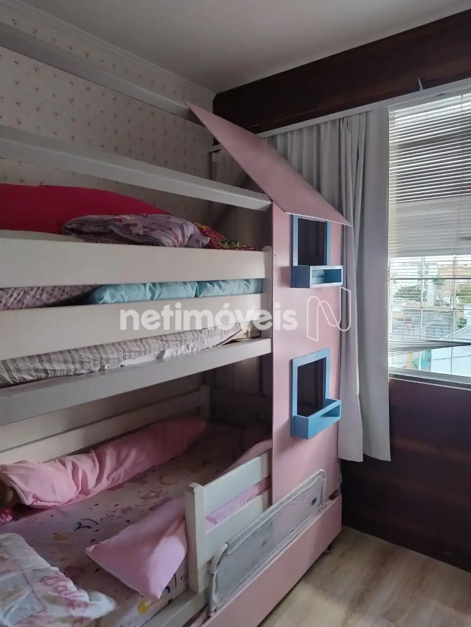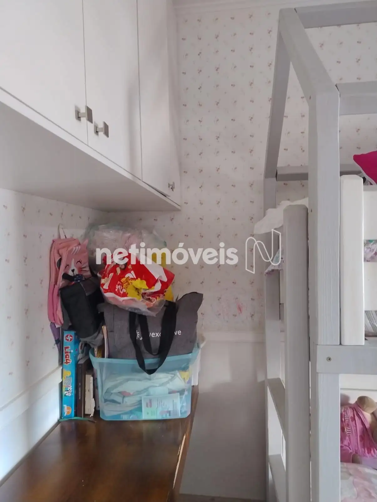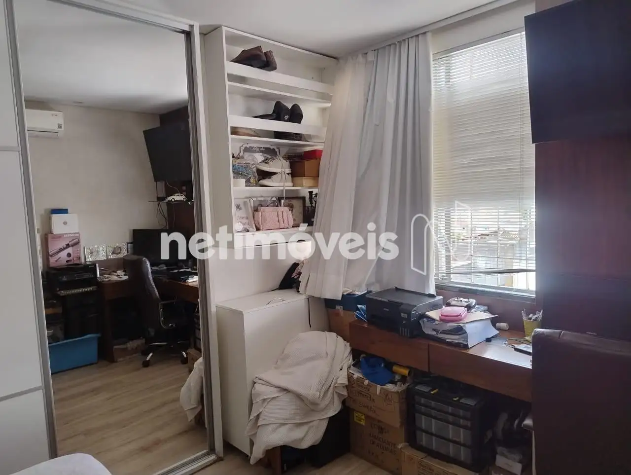Quartos com armários, sendo o quarto de casal equipado com ar condicionado.