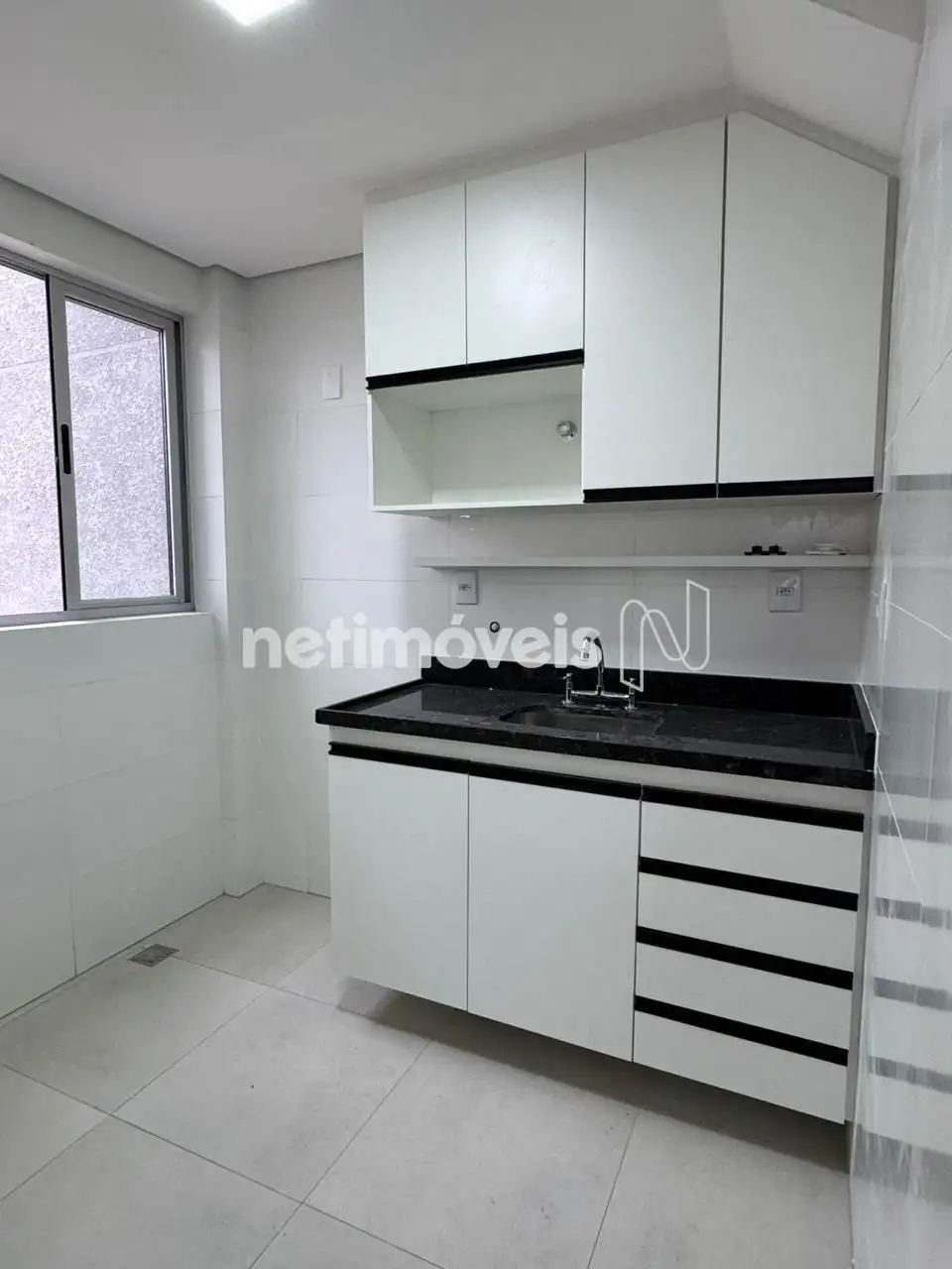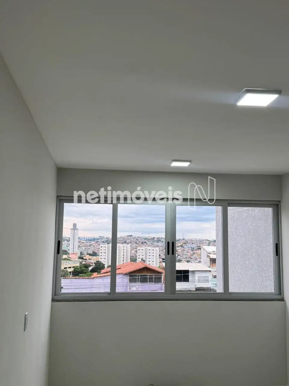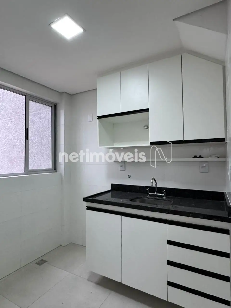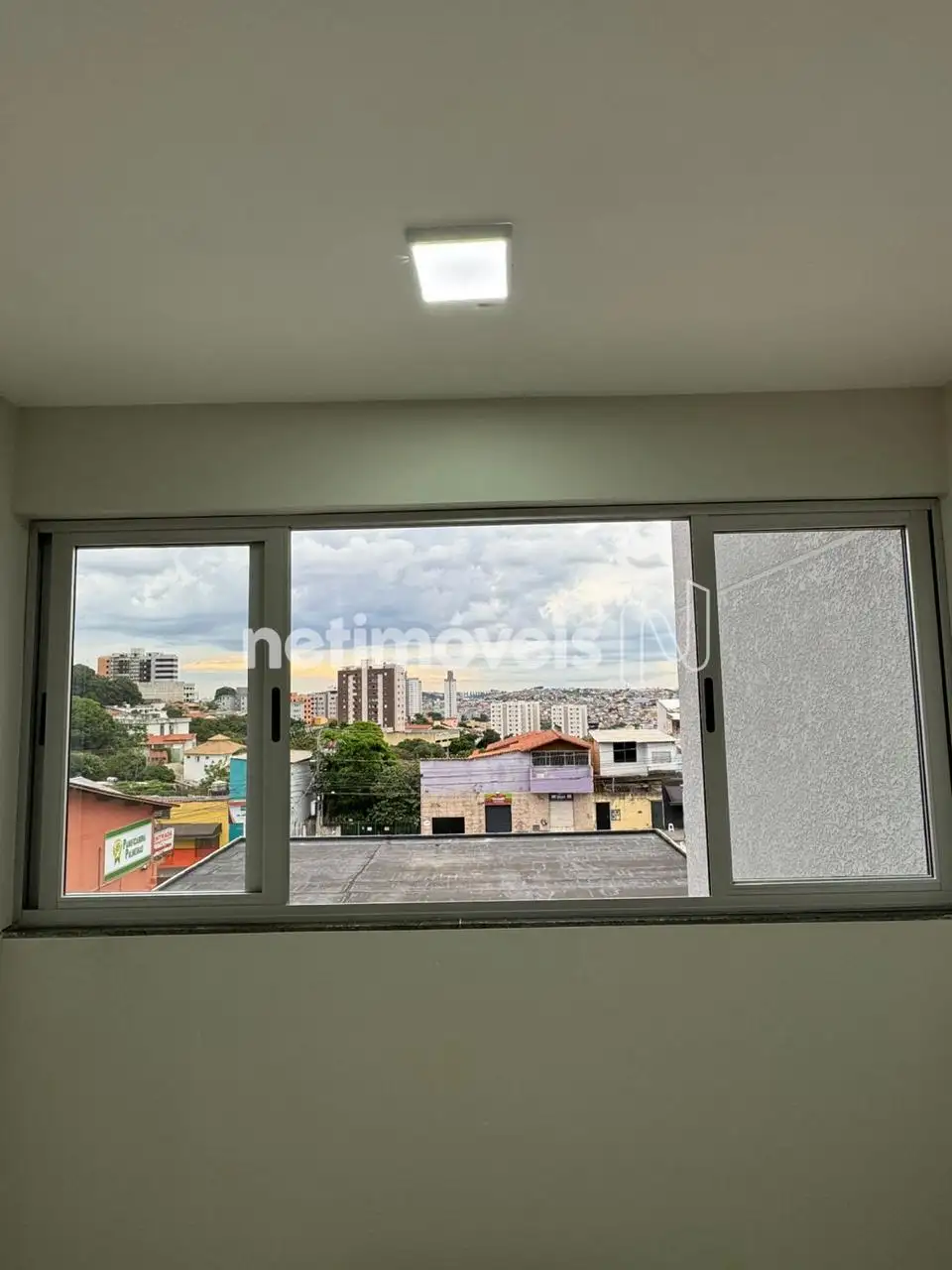 Cobertura com 2 quartos, com armários, Janelas com venezianas, em alumínio. Piso em porcelanato.