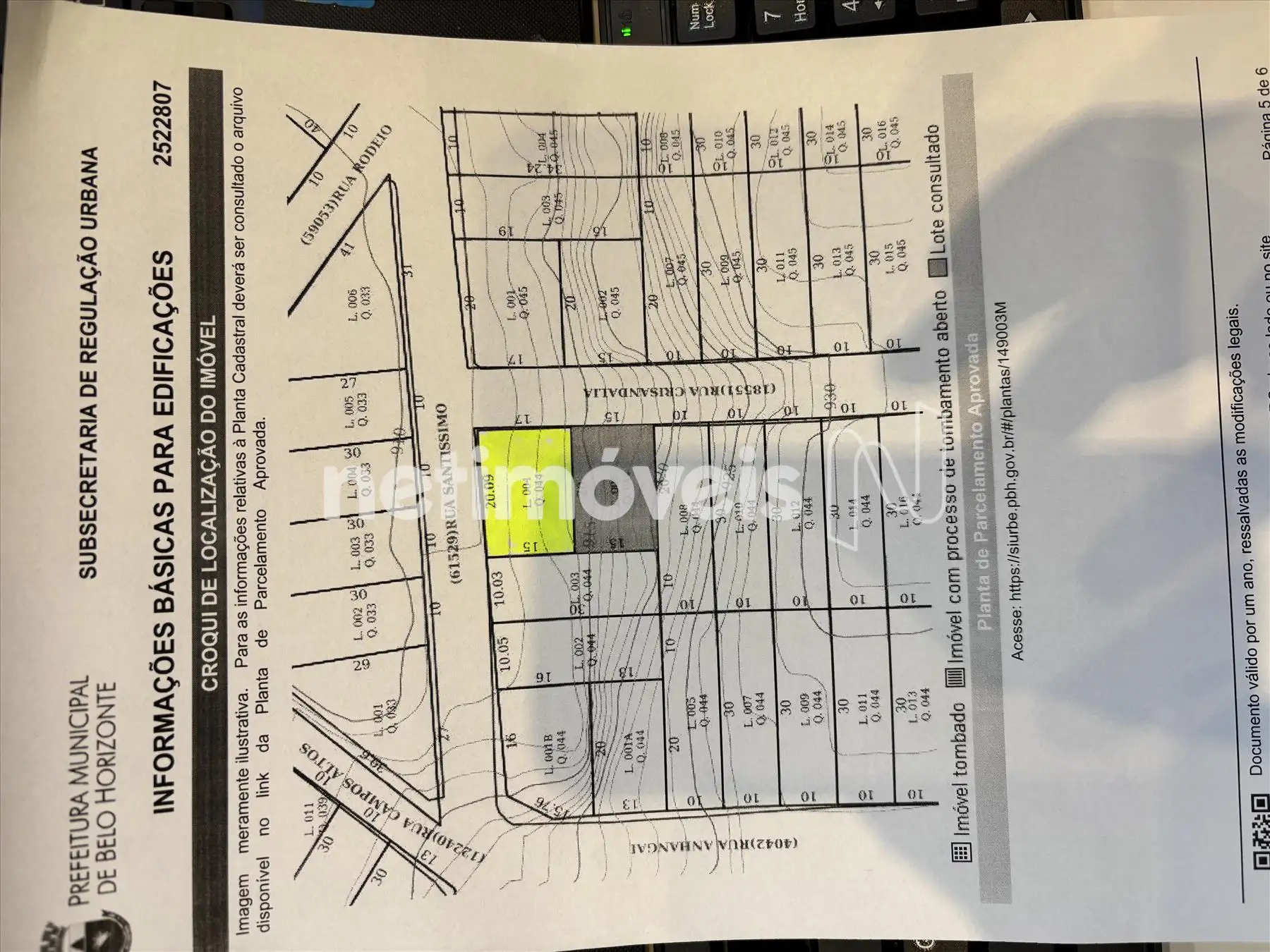 Lote plano, de esquina, 20 metros para Rua Santíssimo, e 17 para Rua Crisandalia.