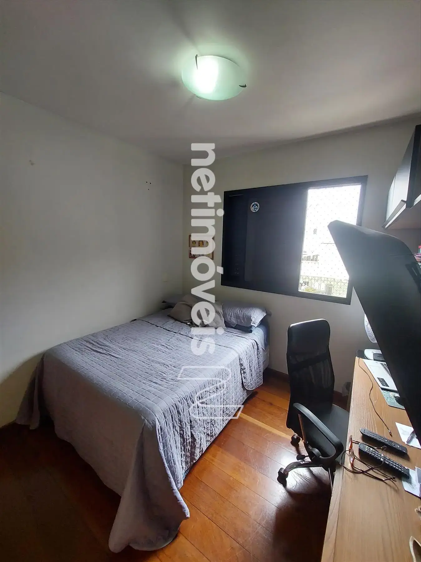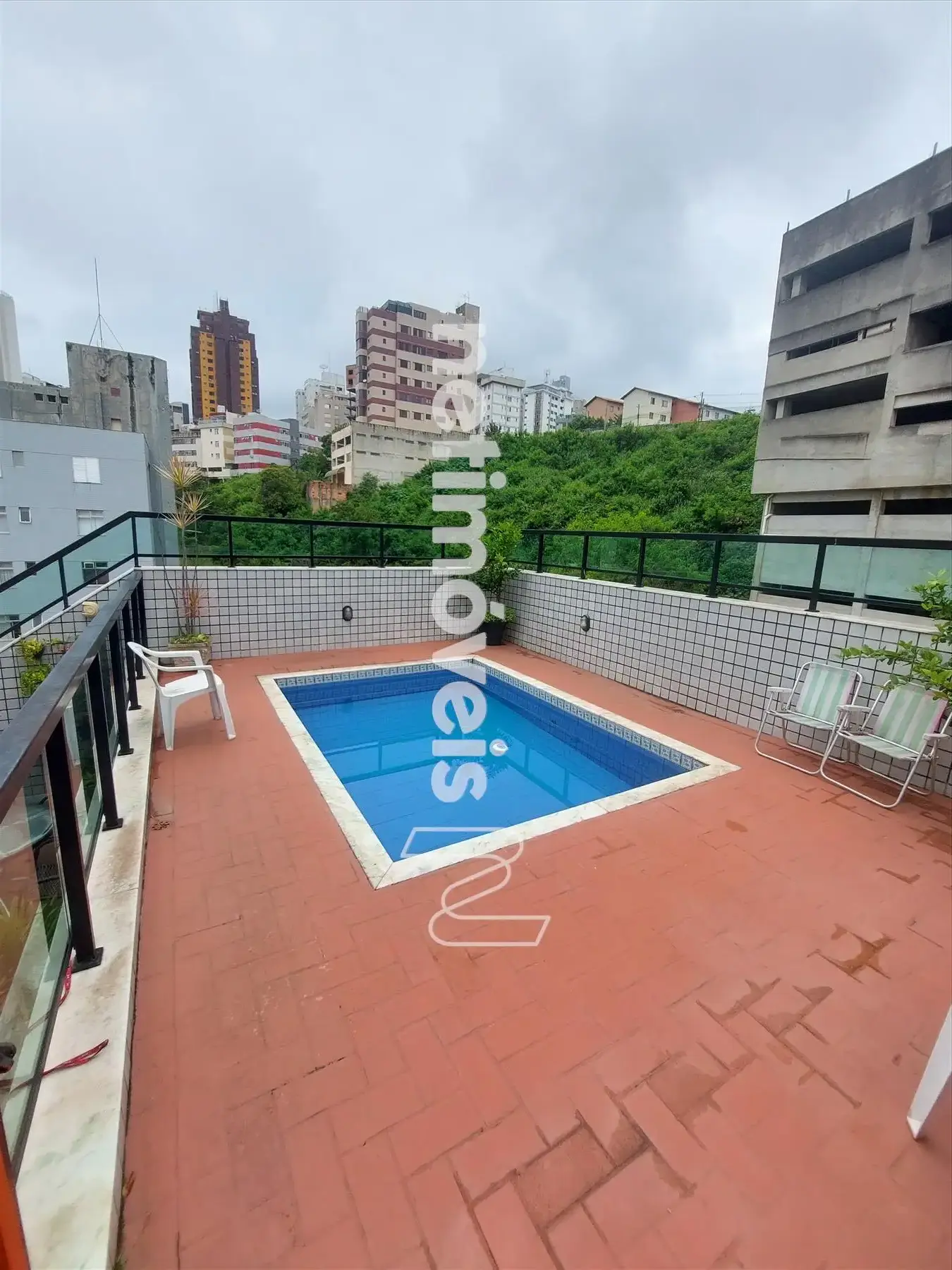 Apartamento 2 º nível: Cobertura com uma sala de televisão espaçosa piso em porcelanato, uma varanda com vista de toda a cidade, 1 banheiro social com bancada em granito, box de vidro e armário em bom estado.