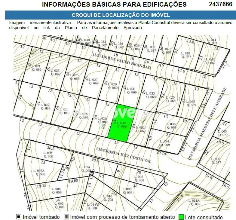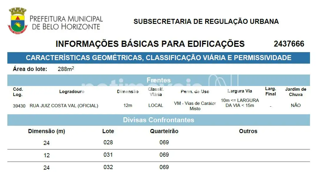 Lote com 288 m2 - 12 metros de frente por 24 de fundos, plano embora situado na descida da rua Juiz da Costa Val, número 713.