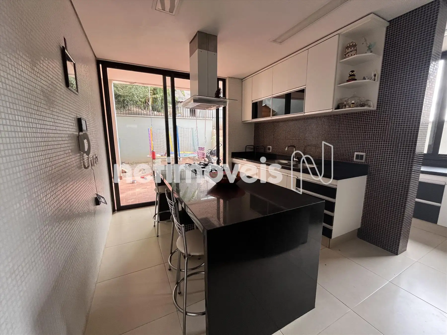 - Cozinha espaçosa com bancada em ilha, armários planejados e área de serviço descoberta nos fundos.