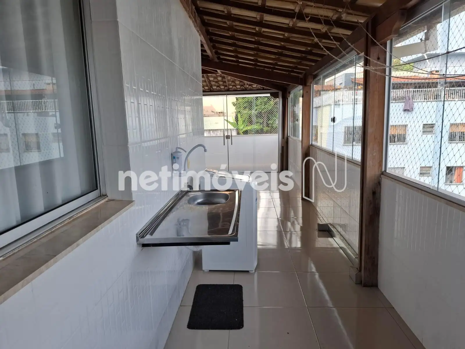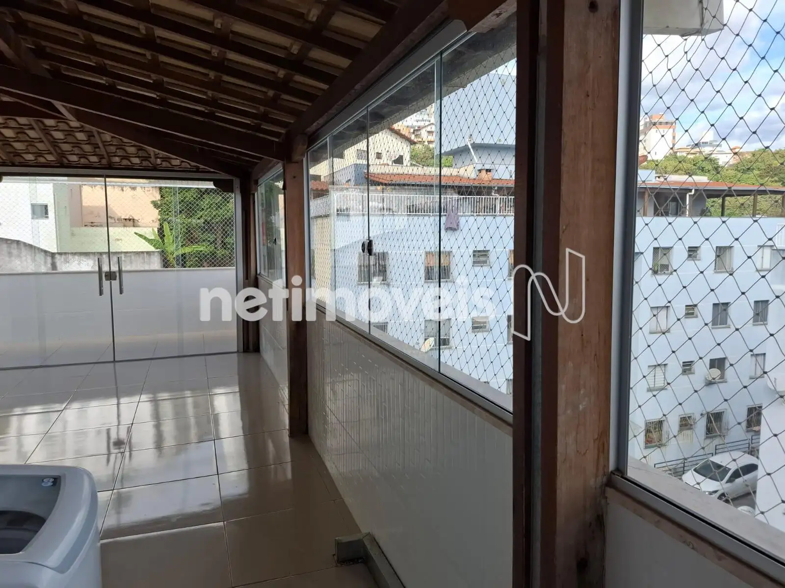 A área privativa é espaçosa e bem dividida: parte coberta, com telhado colonial e fechamento em portas e janelas de blindex — ideal para a criação de uma área gourmet —, e parte descoberta, com tela de proteção na parte superior.