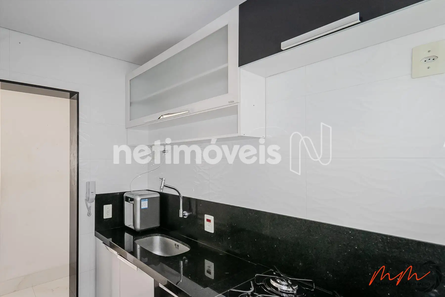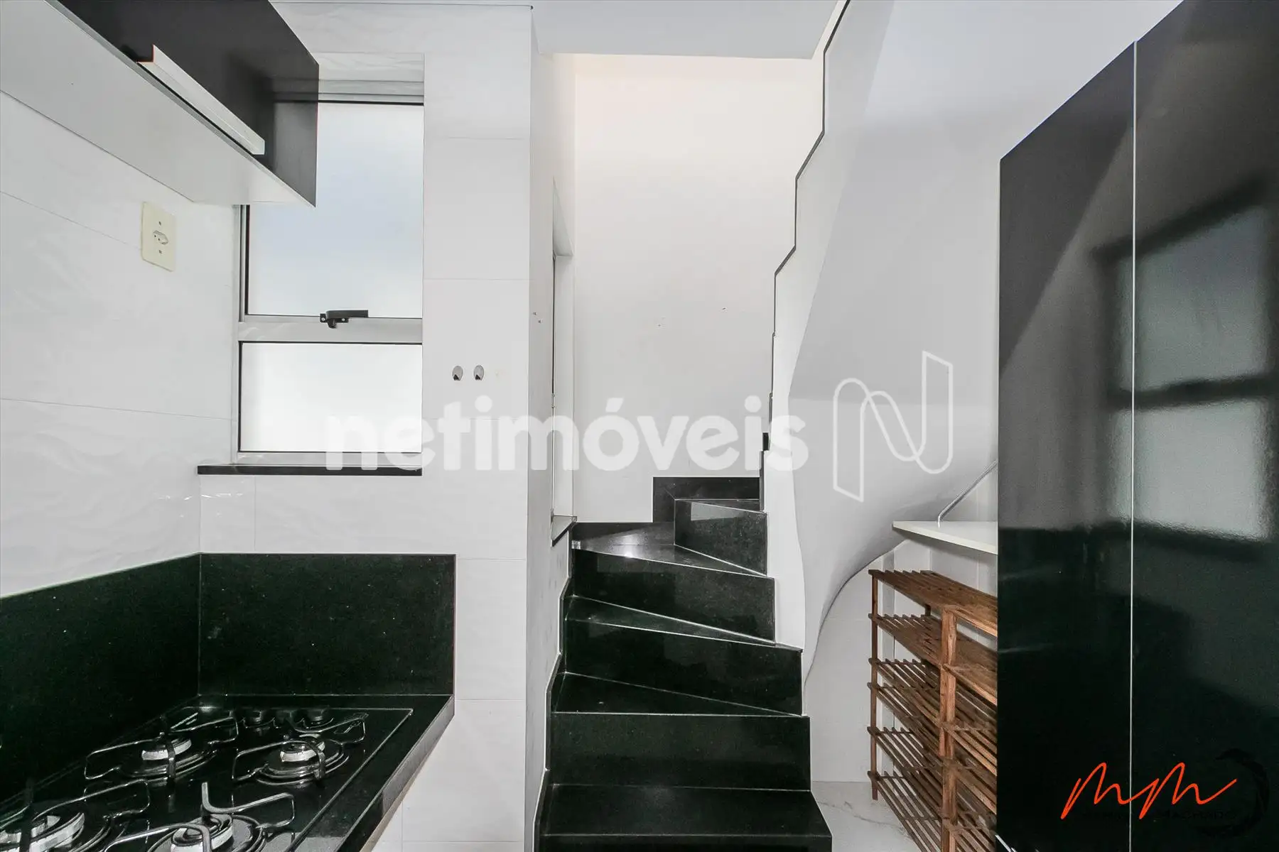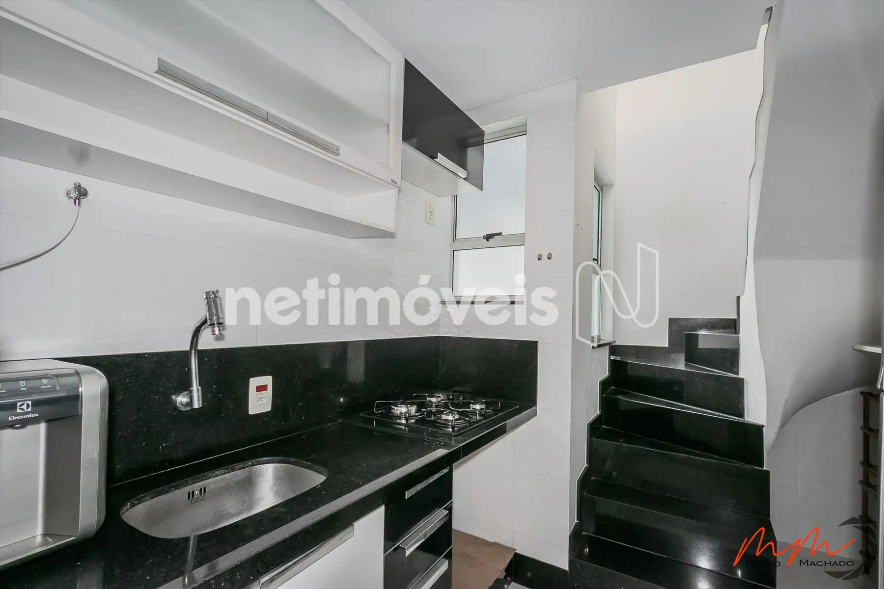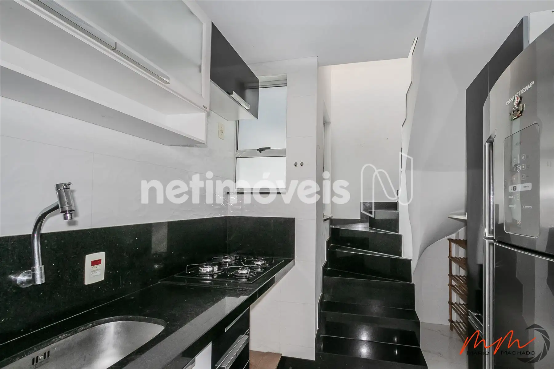- Cozinha com armários e cooktop (piso em porcelanato).