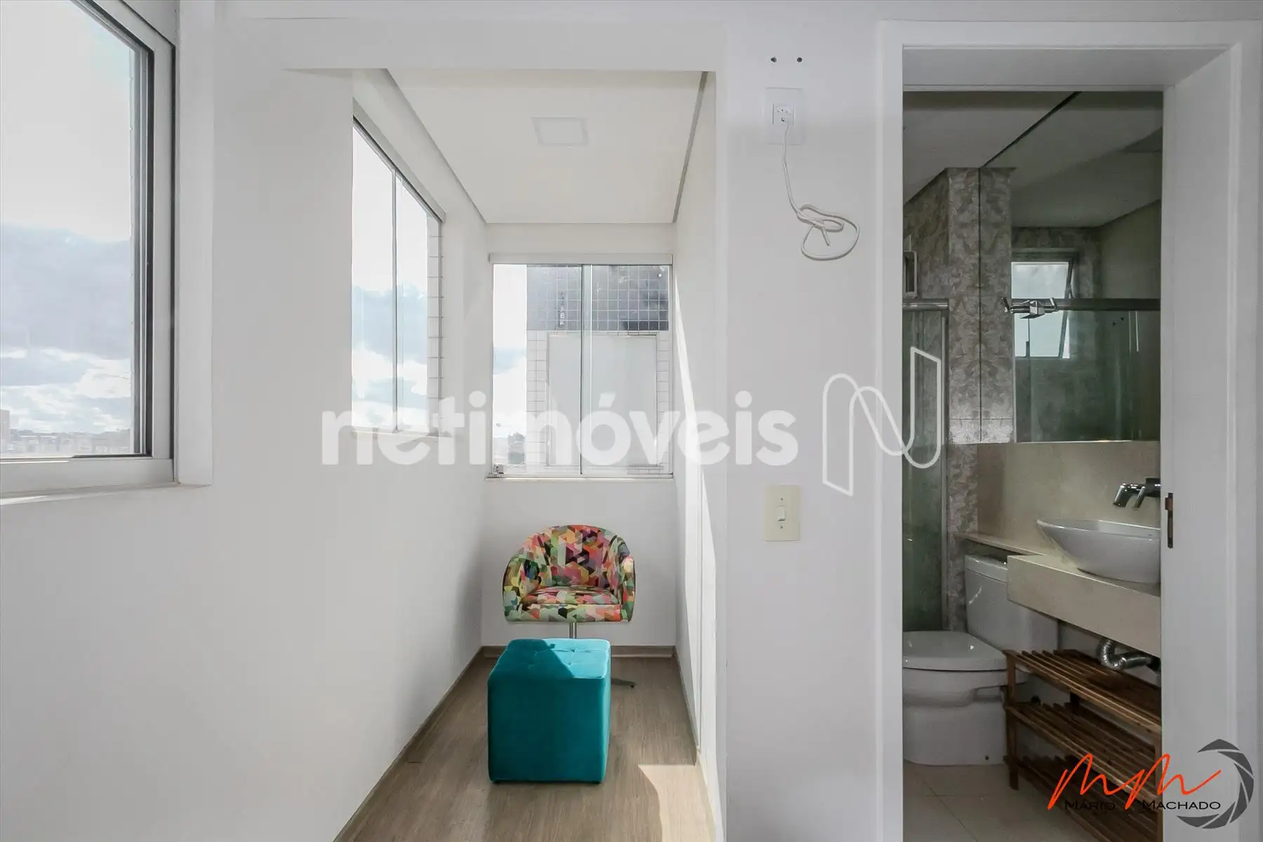 - Banheiro social com box de vidro temperado (piso em porcelanato);