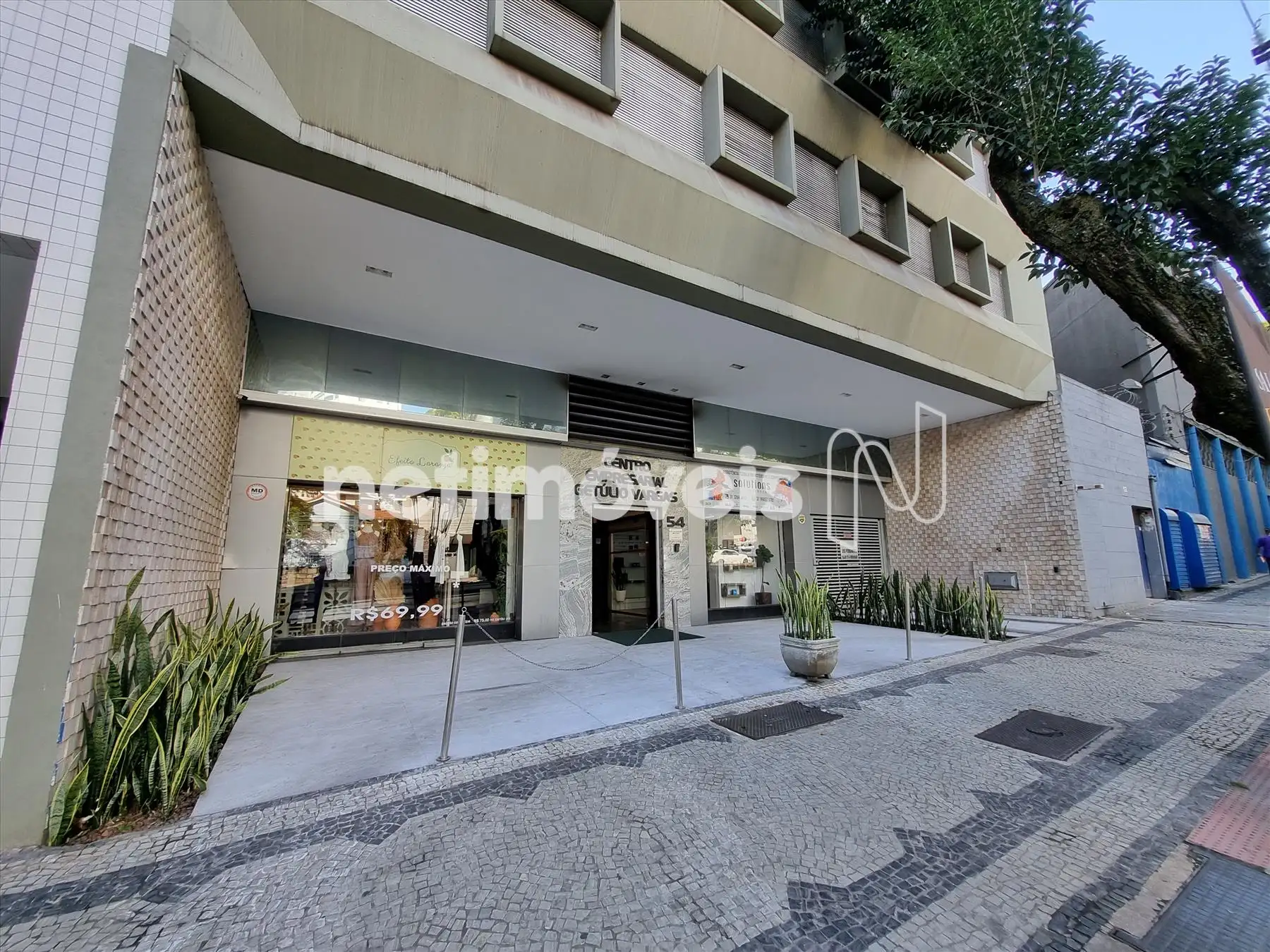 Prédio com fachada revestida e imponente.