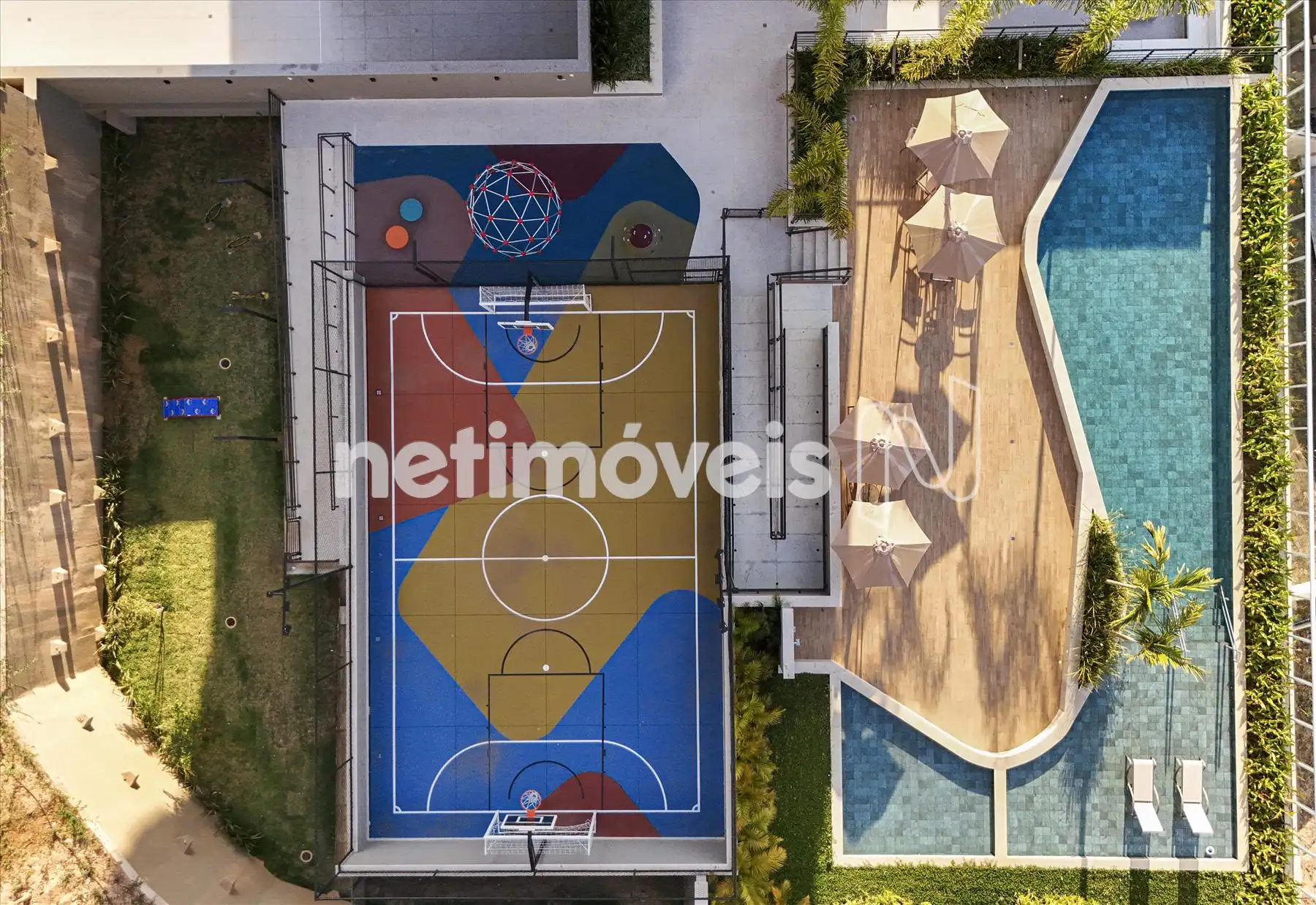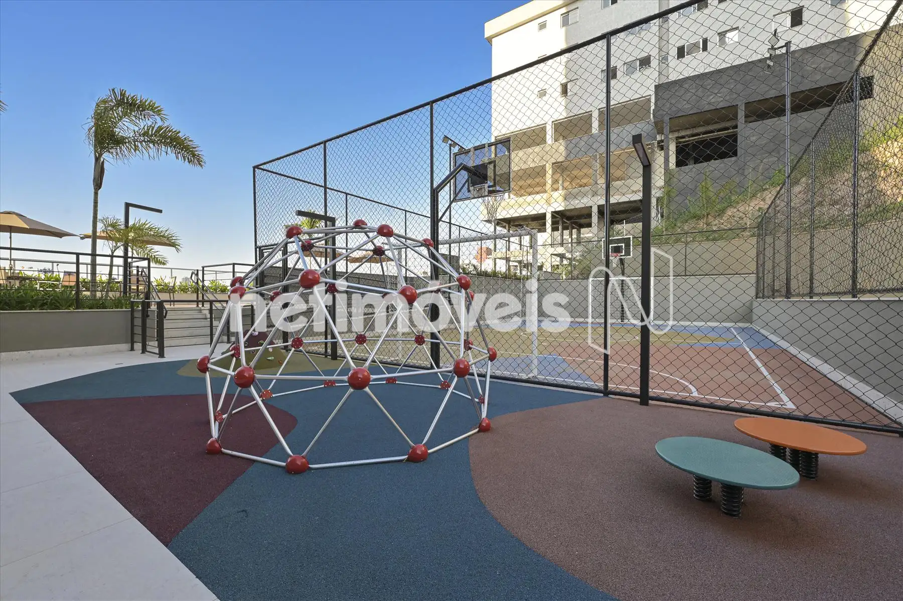 salão de festas, hall de entrada imponente, bicicletário, térreo com área de lazer, piscinas adulto e infantil climatizadas, quadra poliesportiva, playground, fitness, espaço gourmet, lareira, espaço kids e pet place.