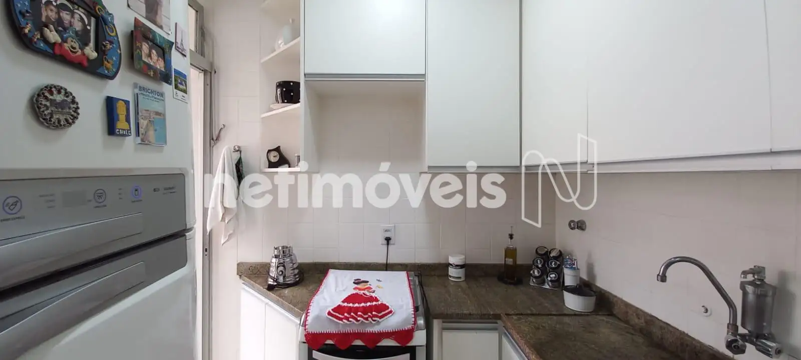 O banheiro social foi recentemente reformado, oferecendo acabamentos modernos e de bom gosto, enquanto o banheiro da suíte mantém o padrão original, bem conservado. A cozinha é um dos destaques do imóvel: ampla, bem iluminada e equipada com armários planejados que otimizam o espaço e garantem praticidade no dia a dia. A área de serviço é funcional e conta ainda com dependência completa de empregada (DCE).