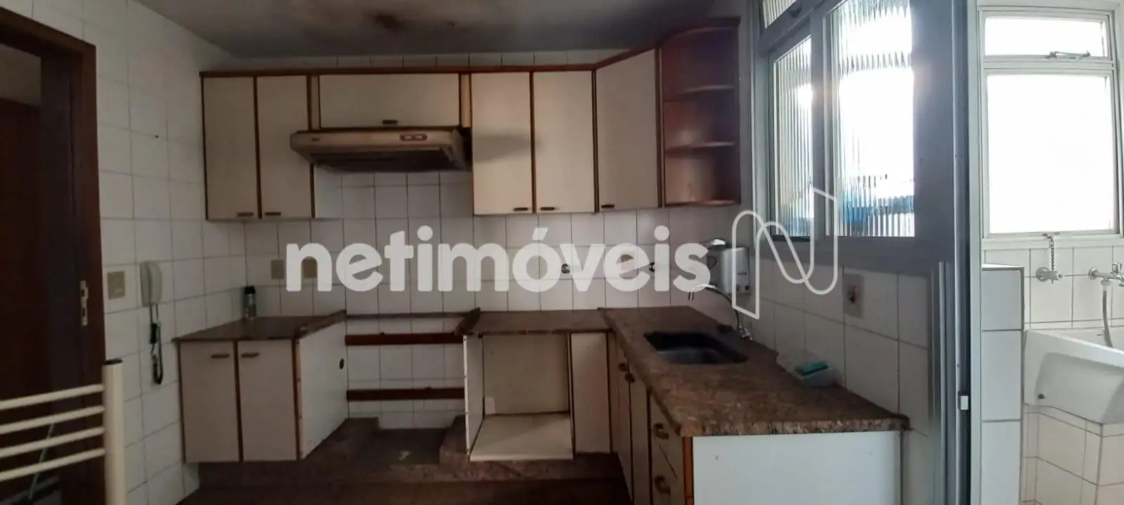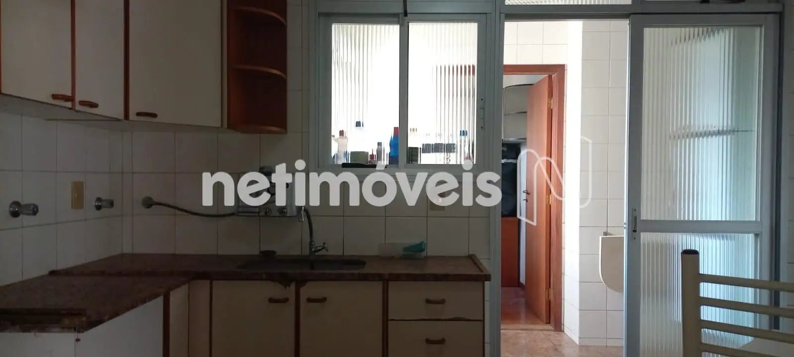 A cozinha se destaca pelo tamanho generoso e funcionalidade, equipada com armários planejados e uma prática mesa de apoio em granito. A área de serviço é bem dimensionada, com dependência completa de empregada (DCE) e armários.