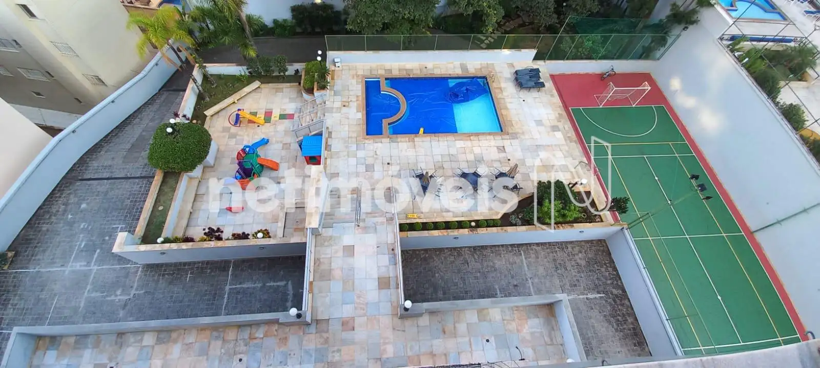 Excelente prédio, revestido, acabamento de luxo com portaria e câmera de vigilância 24h, academia, piscina adulto e infantil, playground, salão de festas, espaço gourmet, churrasqueira e quadra de esportes.