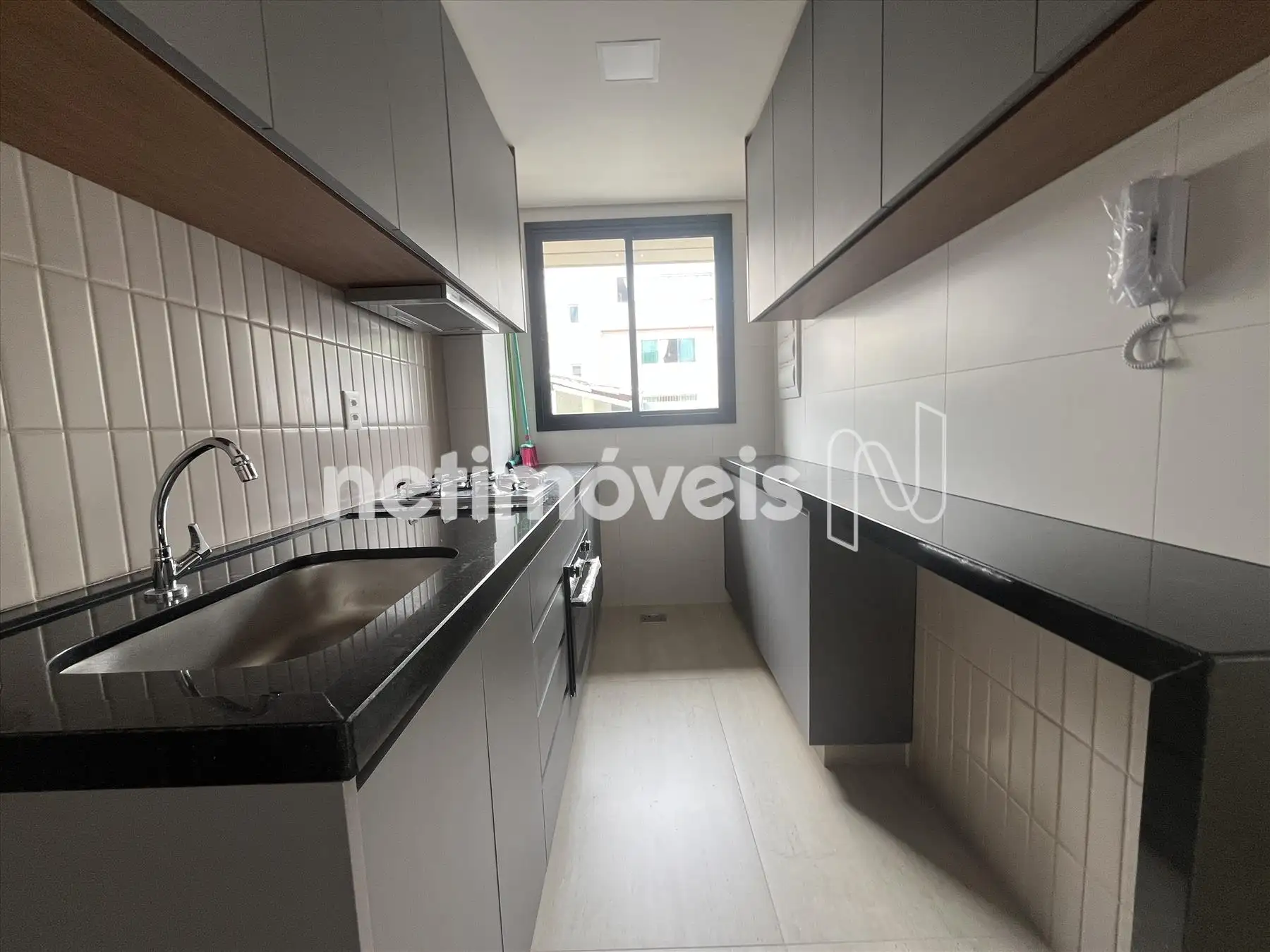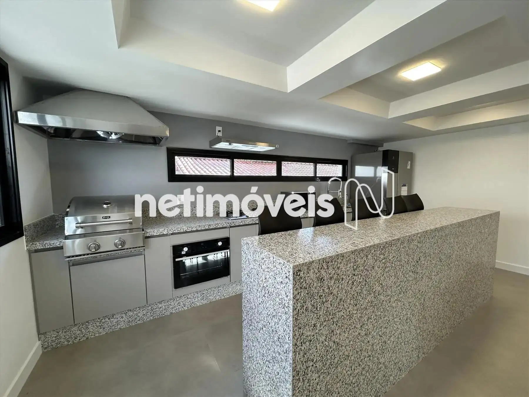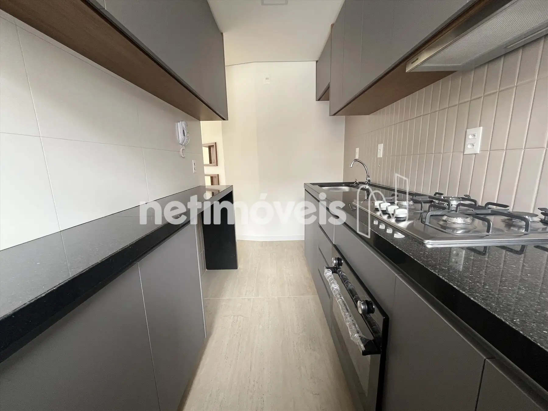 Cozinha equipada com bancadas em granito, armários planejados, forno, cooktop e depurador (exaustor). Iluminação planejada já instalada.