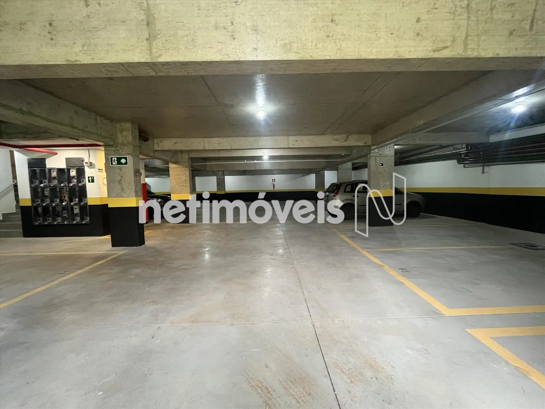 Prédio com fachada imponente, elevador social e hall decorado.