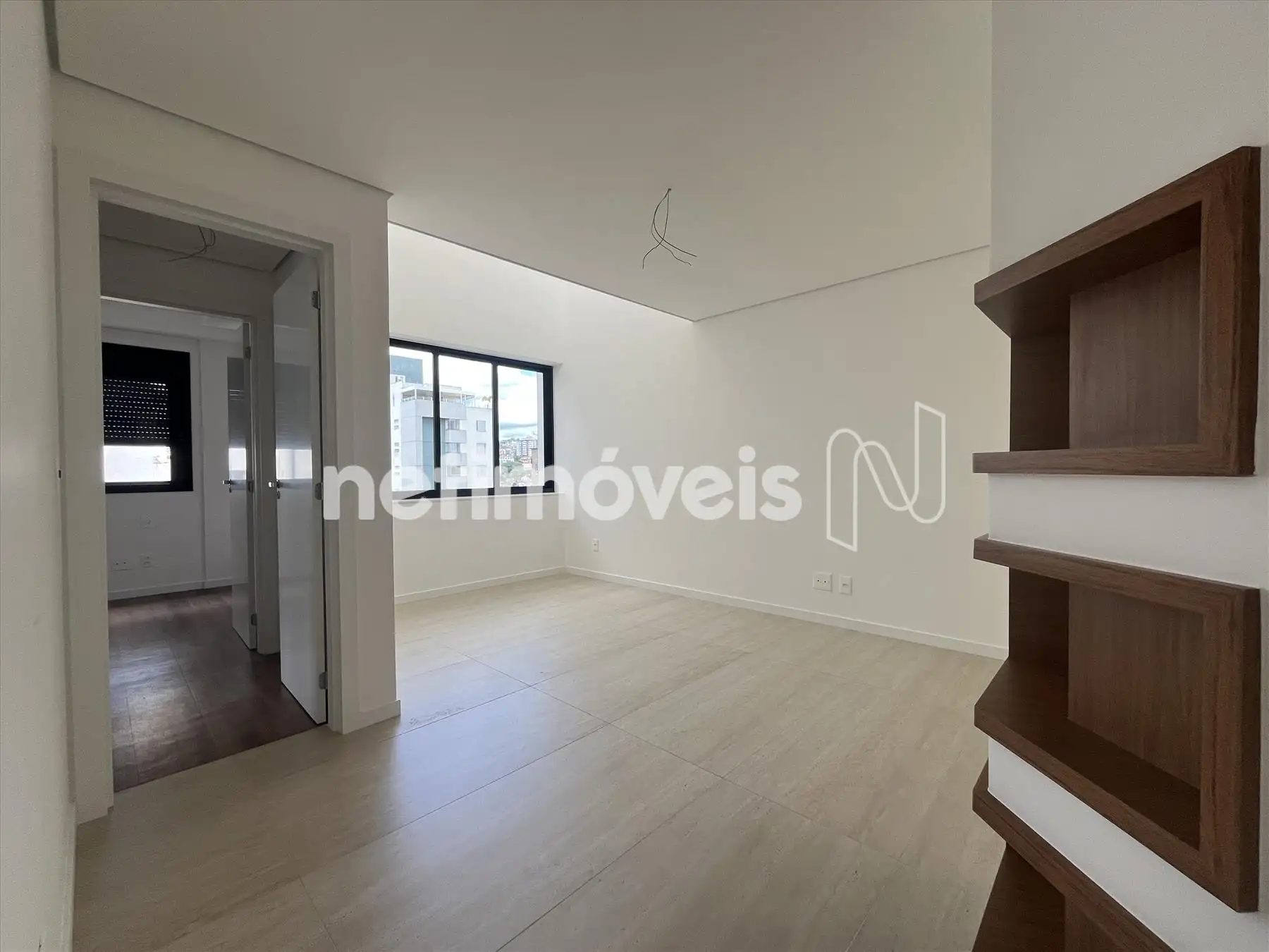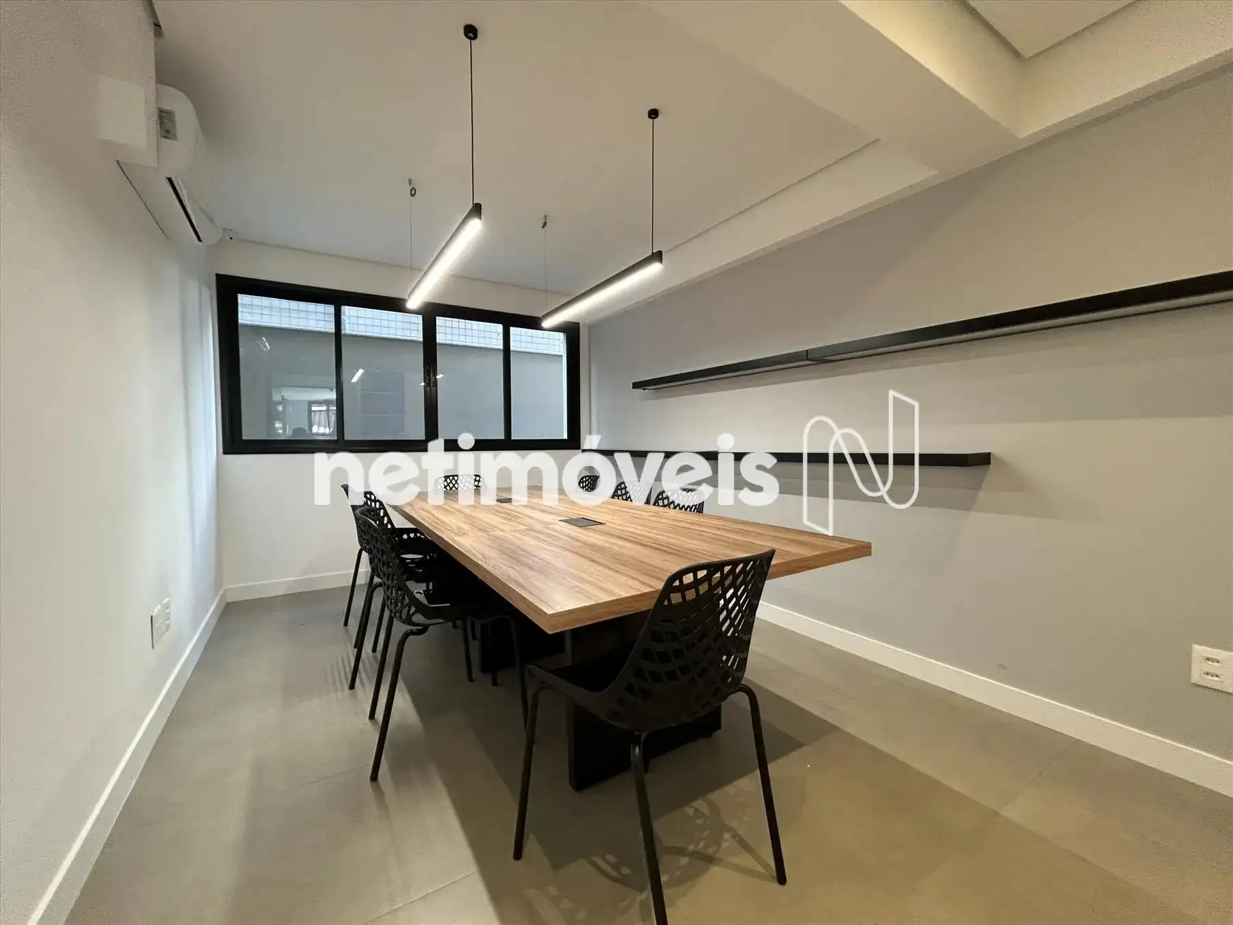 Ampla sala para dois ambientes, piso em porcelanato e iluminação instalada;