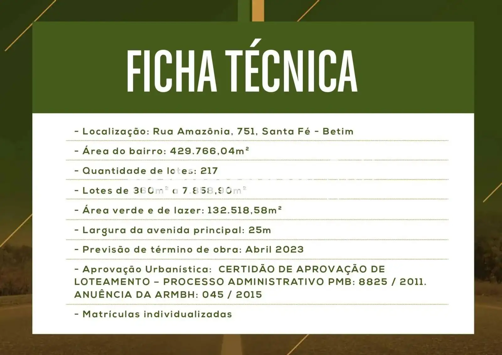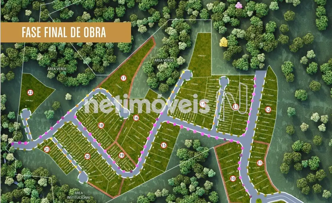 A infraestrutura do empreendimento inclui: Ruas largas e asfaltadas com meio-fio, passeio e sarjeta, ruas arborizadas com ipês, rede elétrica completa, iluminação pública em LED, rede de drenagem de águas pluviais, rede de água e esgoto da Copasa.