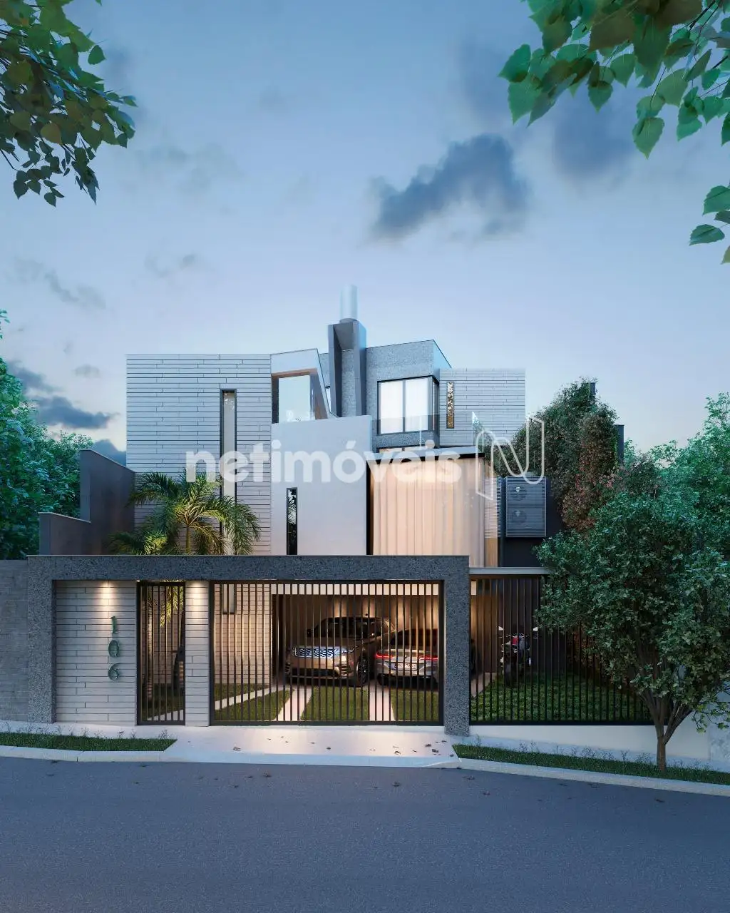1º Piso: Jardins e 02 garagens, elevador.
