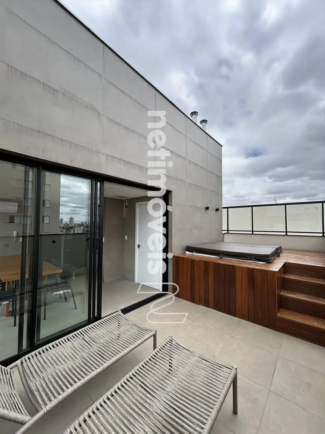 - Prédio: Com Rooftop novo; 100% revestido em porcelanato aerado; esquadrias de alumínio com persiana embutida; pilotis; elevador; 11 andares com 03 apartamentos por andar; interfone; hall social; portão eletrônico; água e gás canalizados.