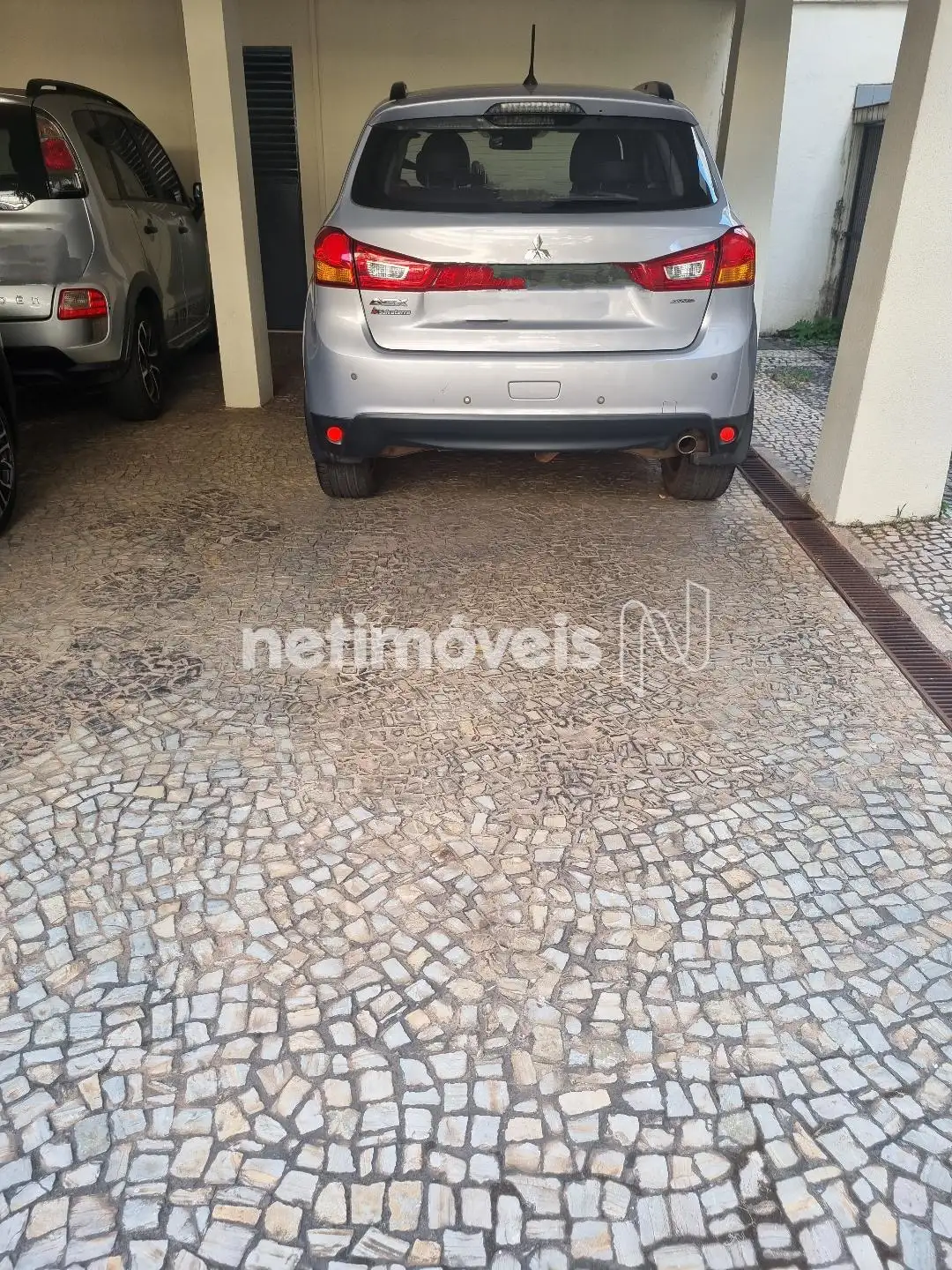Box de despejo e 2 vagas em linha cobertas e demarcadas.