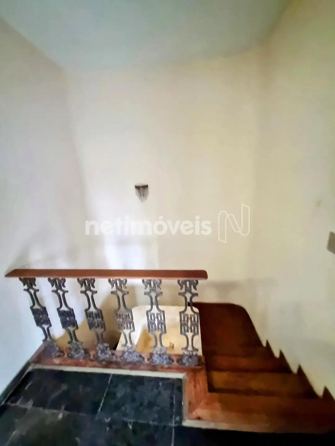A escada de acesso para o segundo piso é em alvenaria.