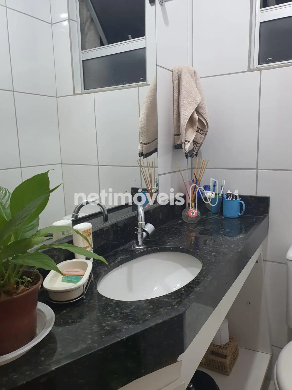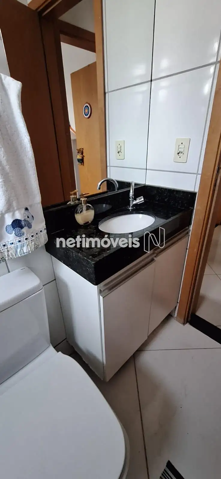- Lavabo com piso em porcelanato e pia com bancada em granito com armário.