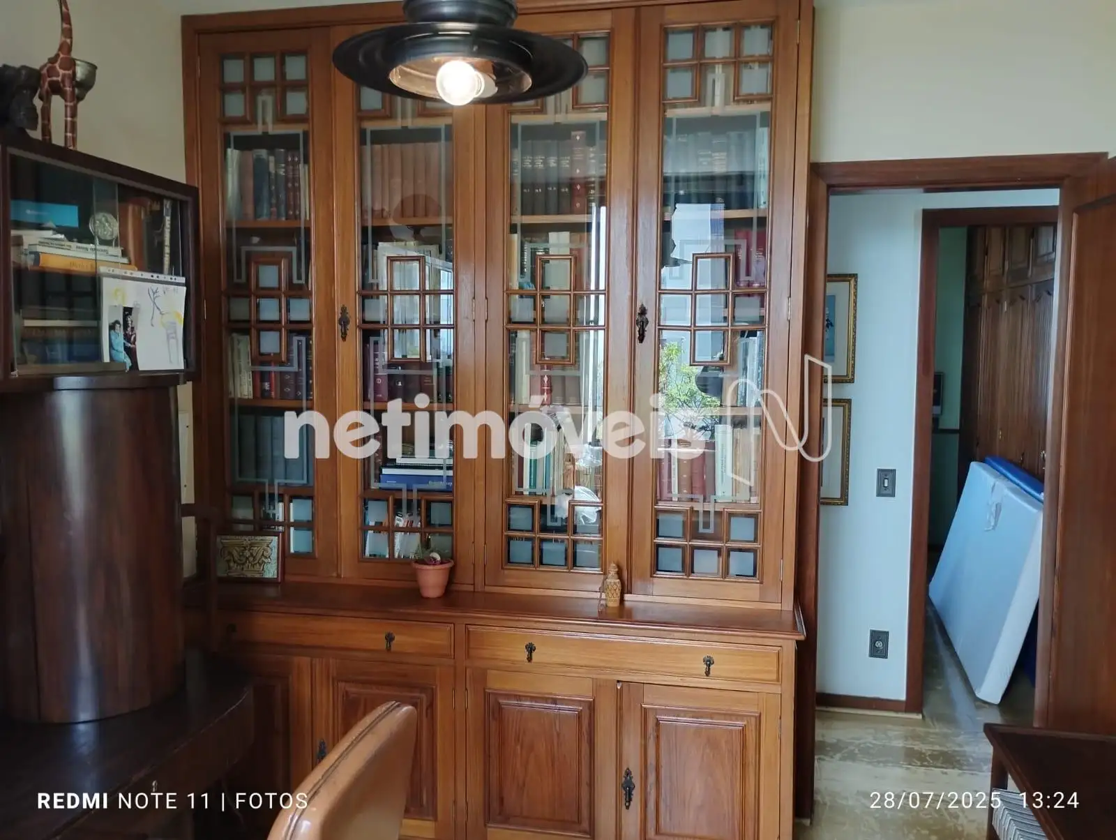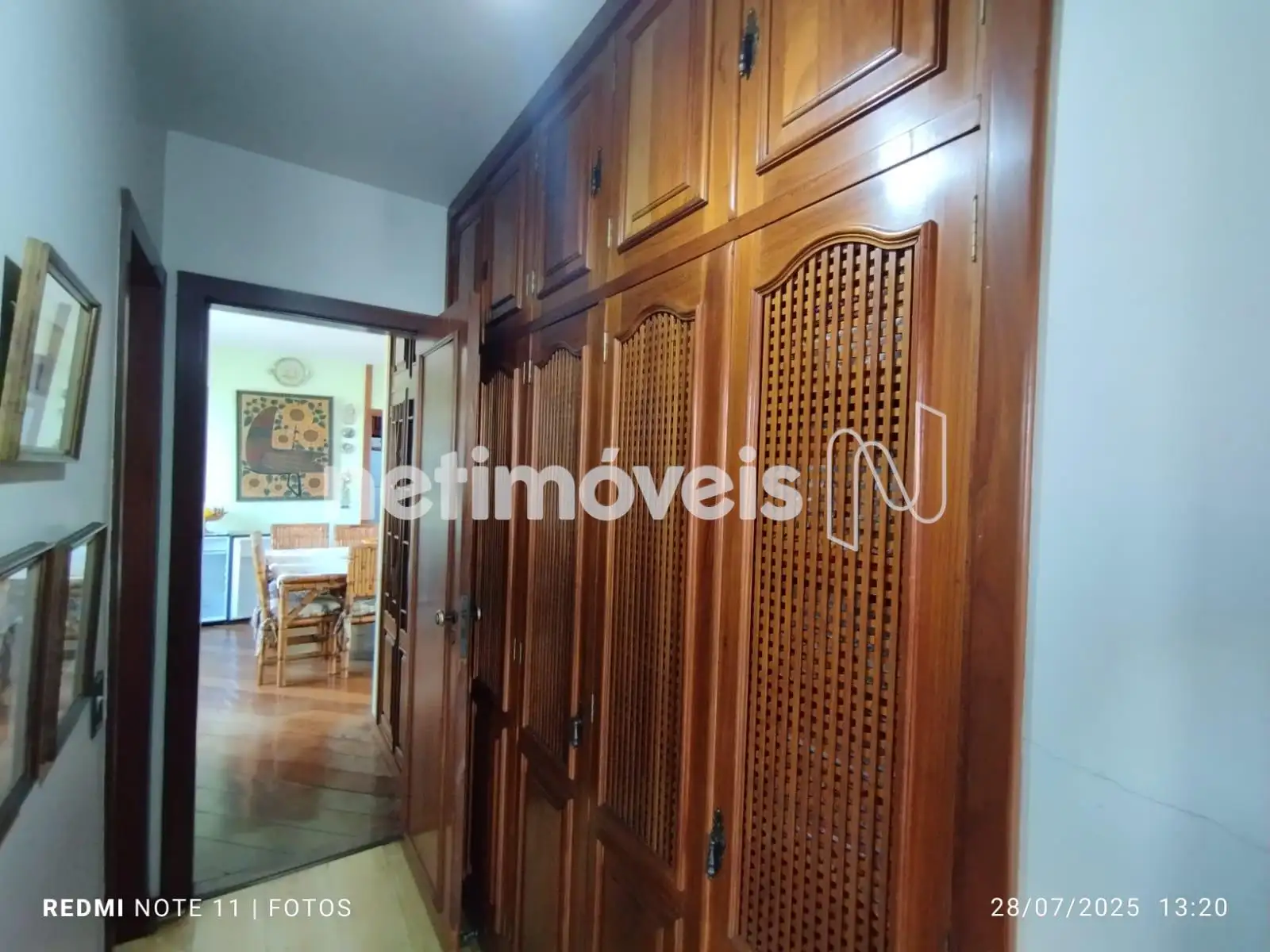 Corredor decorado, com armário de treliça