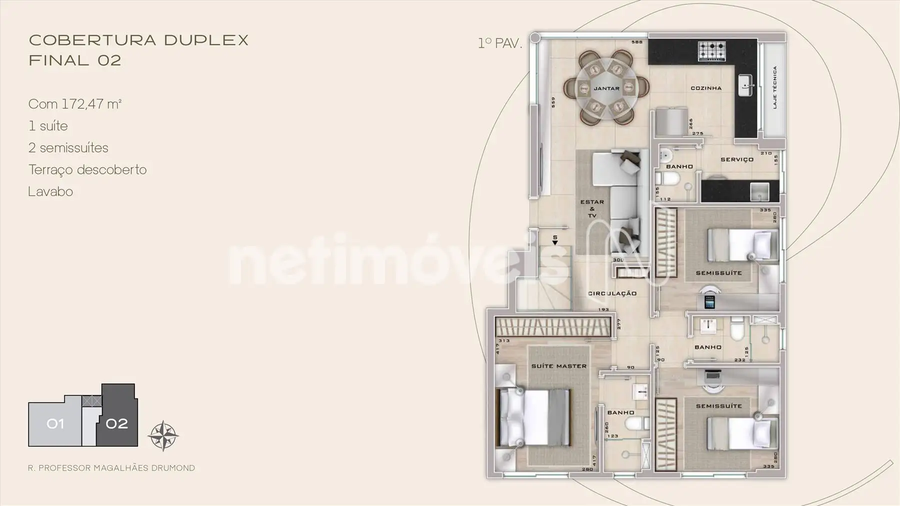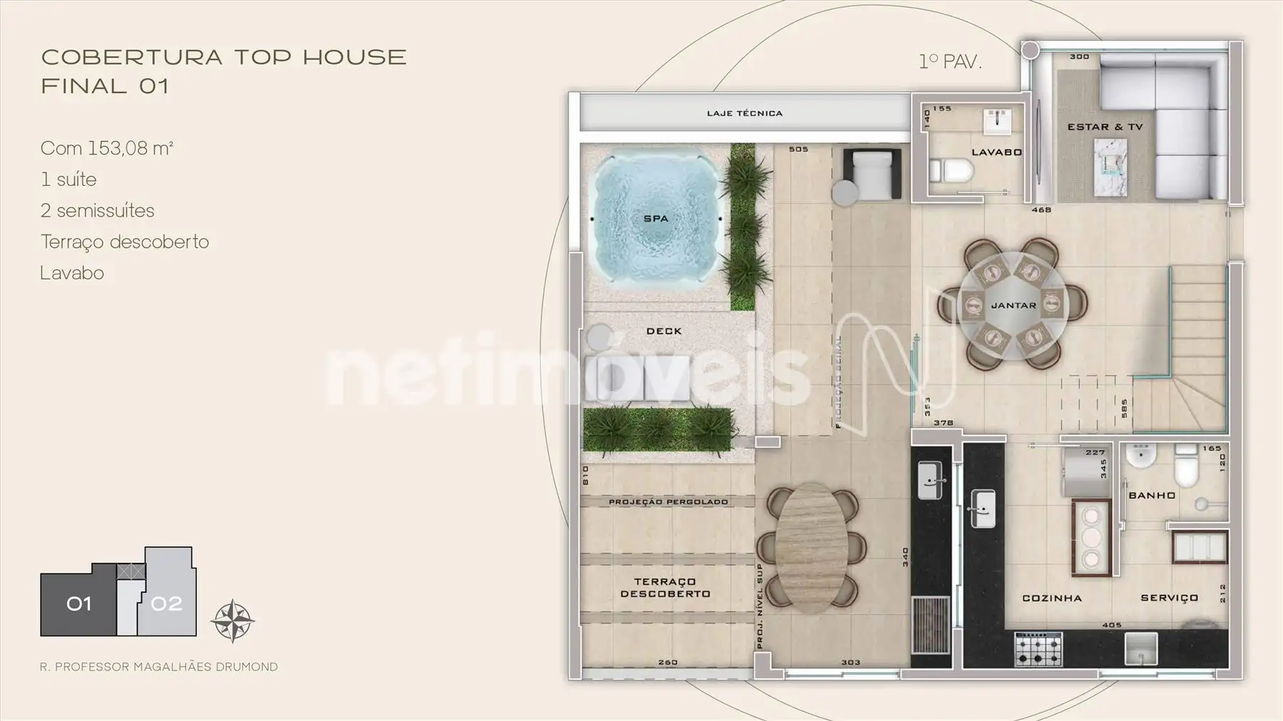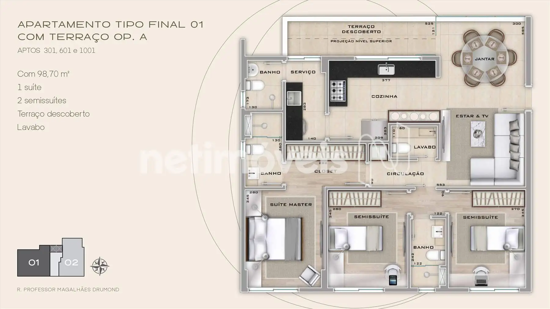 - 2 banheiros sendo 1 suite e 2 semissuites