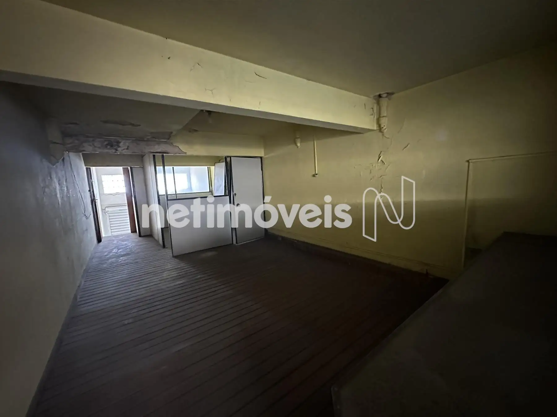 Mezanino com divisória e banheiro.