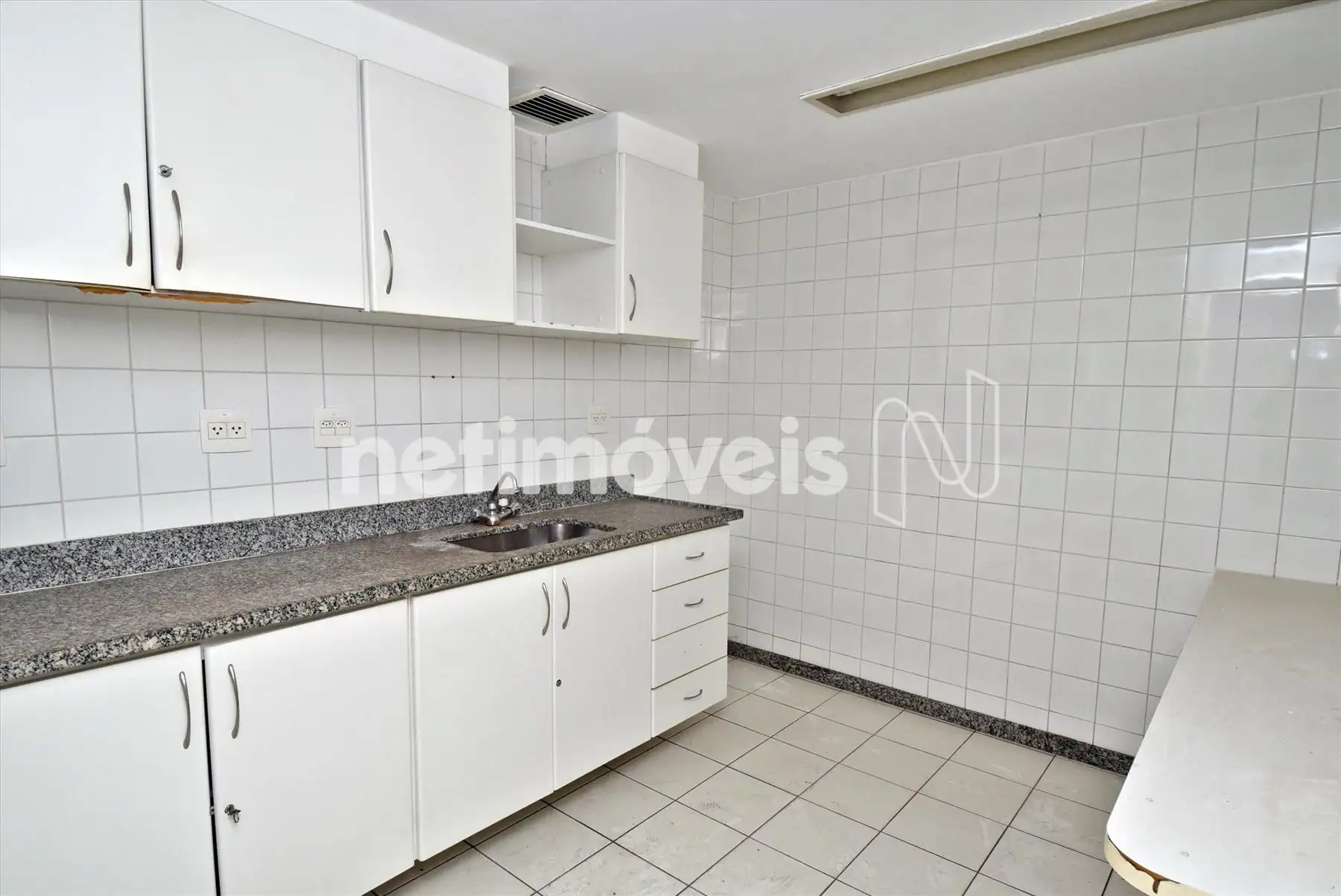 - Cozinha com armário, bancada em granito e piso em cerâmica