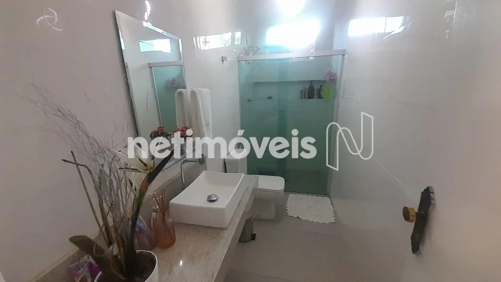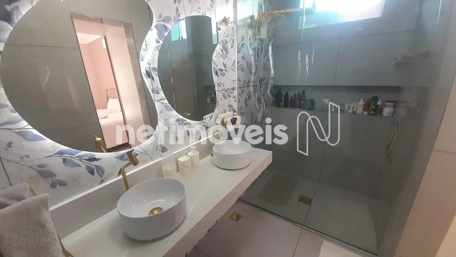 Banho da suíte com box em vidro temperado, bancada em silestone com dois bojos em porcelana.