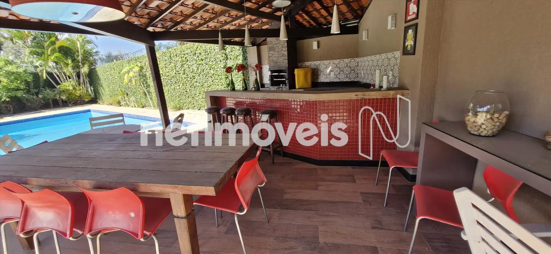 A casa conta com infraestrutura completa, incluindo sistema de segurança, área de lazer com quadra, piscina, espaço gourmet.