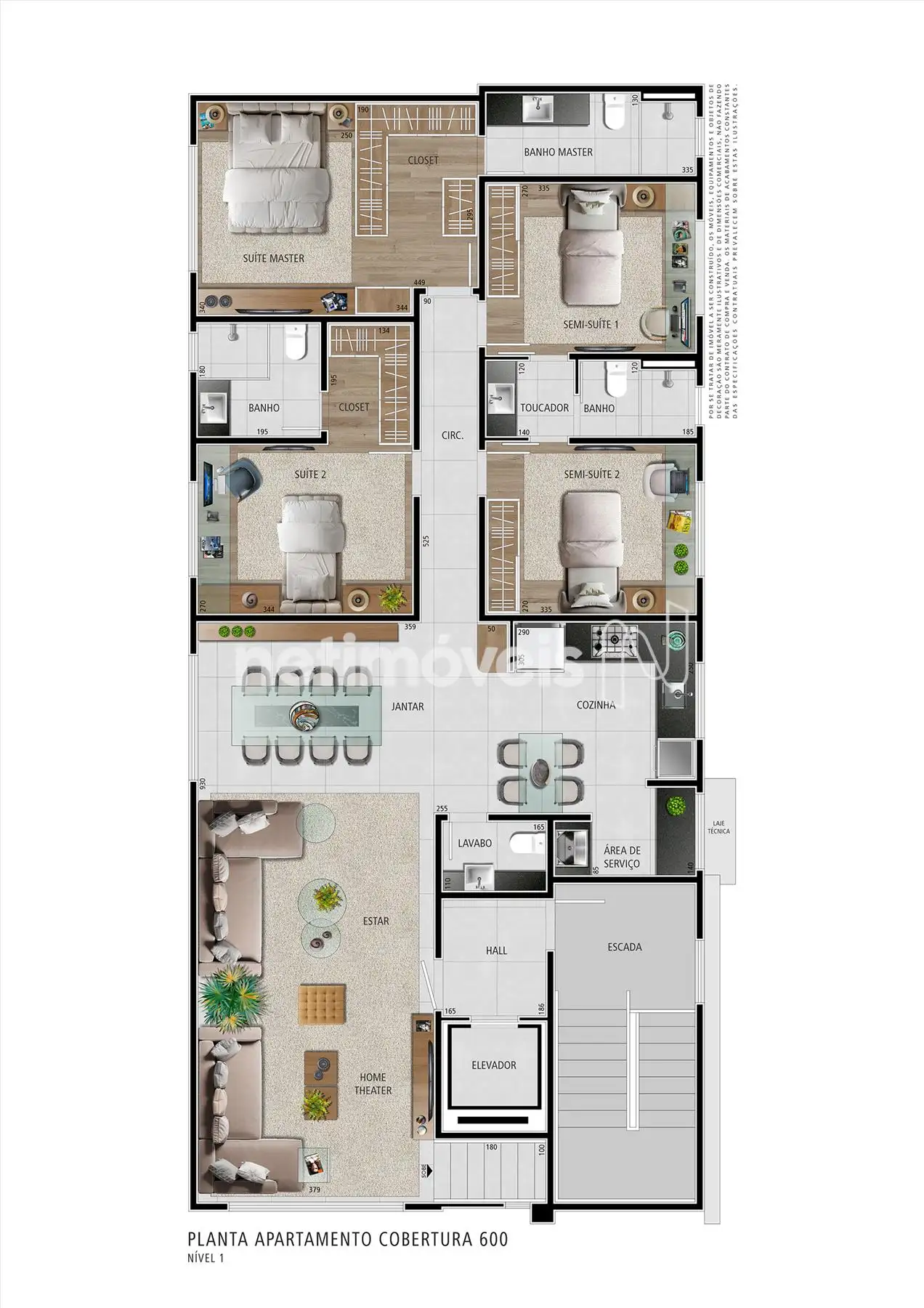 4 quartos sendo 2 suítes master com closet e 2 semi-suítes