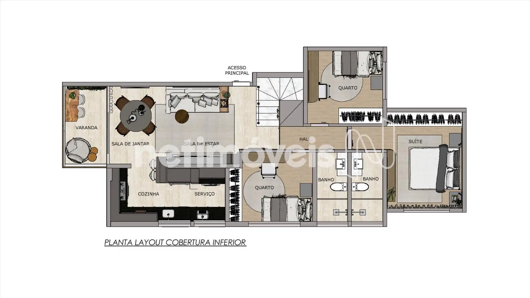 - Cozinha funcional integrada à sala com ligação direta à área de serviço;