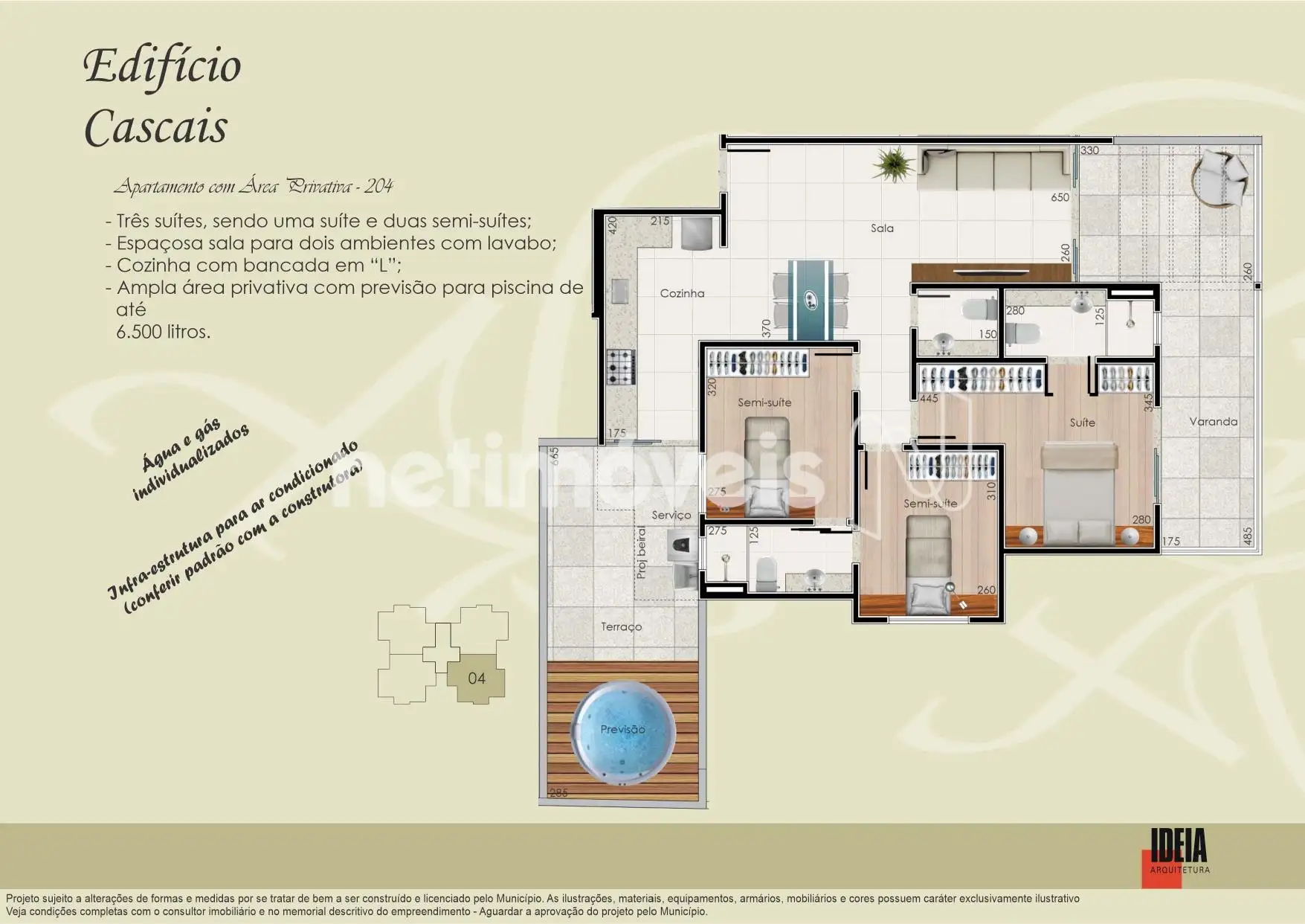 Ampla área privativa com previsão para piscina de 6.500L.