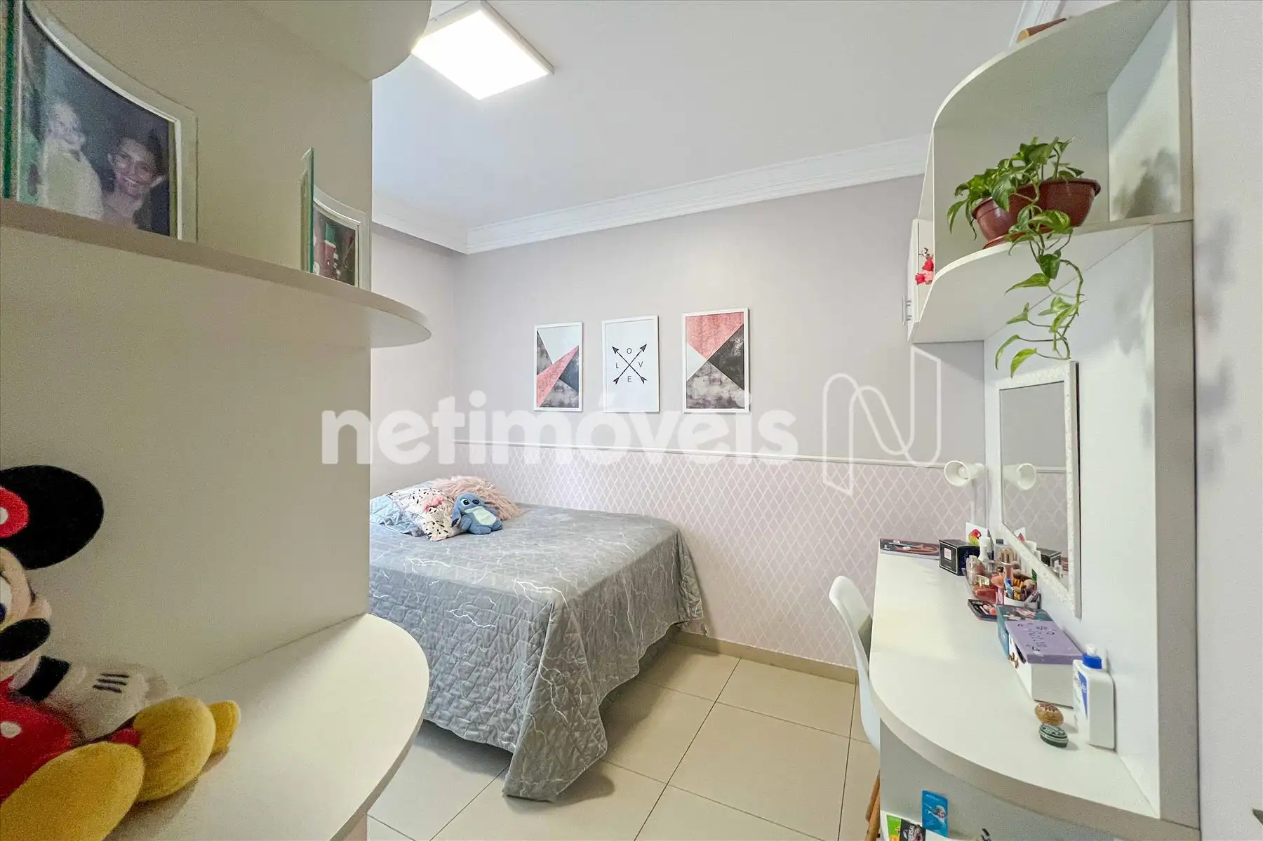 São 4 quartos amplos, todos com armários planejados, acabamento em porcelanato e excelente iluminação natural. A suíte master é um destaque à parte, contando com closet espaçoso e banheiro amplo com banheira, proporcionando uma experiência de conforto e bem-estar.