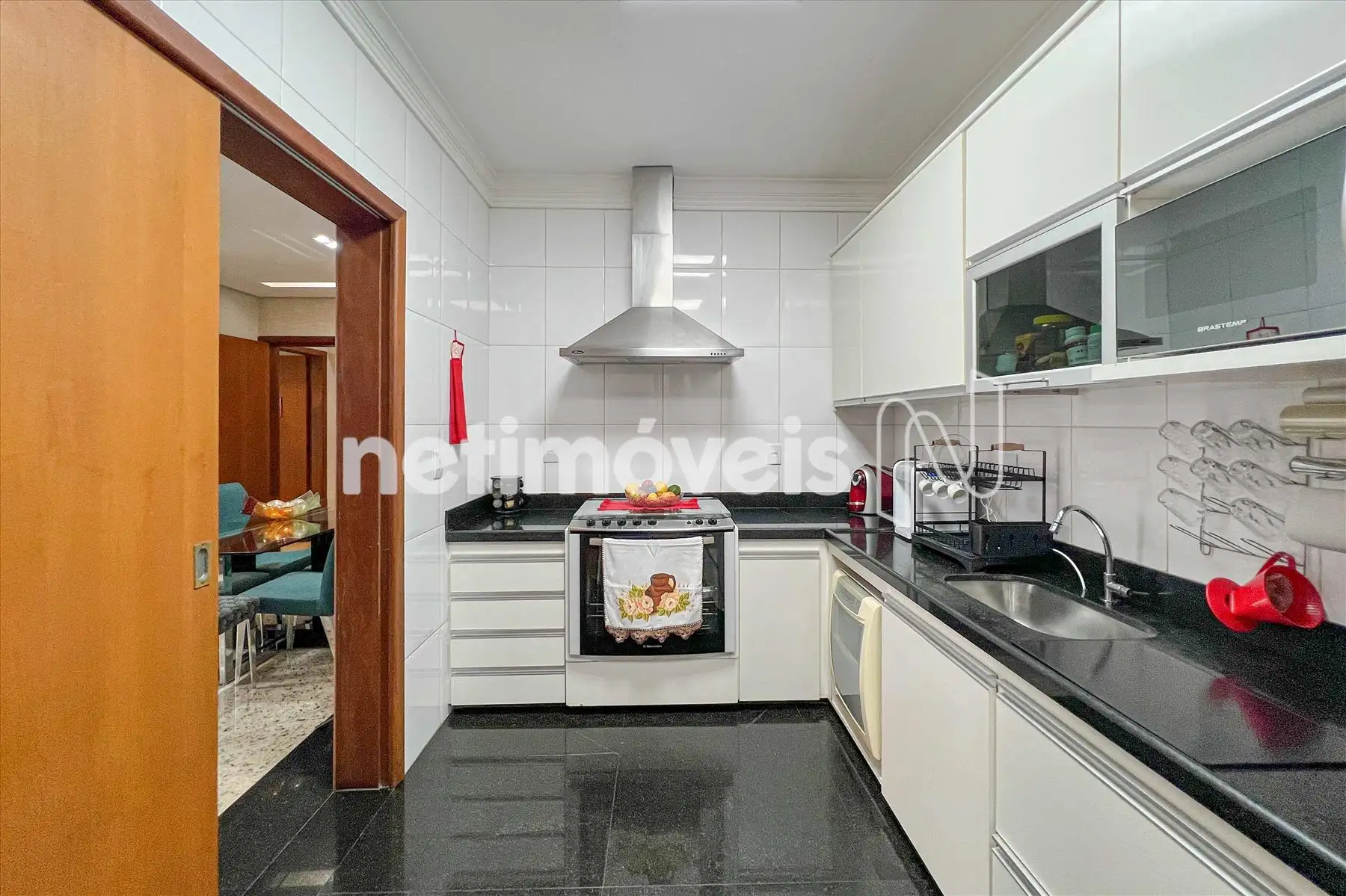 A cozinha é totalmente equipada com armários planejados, funcional e moderna, seguindo o padrão premium do apartamento.
