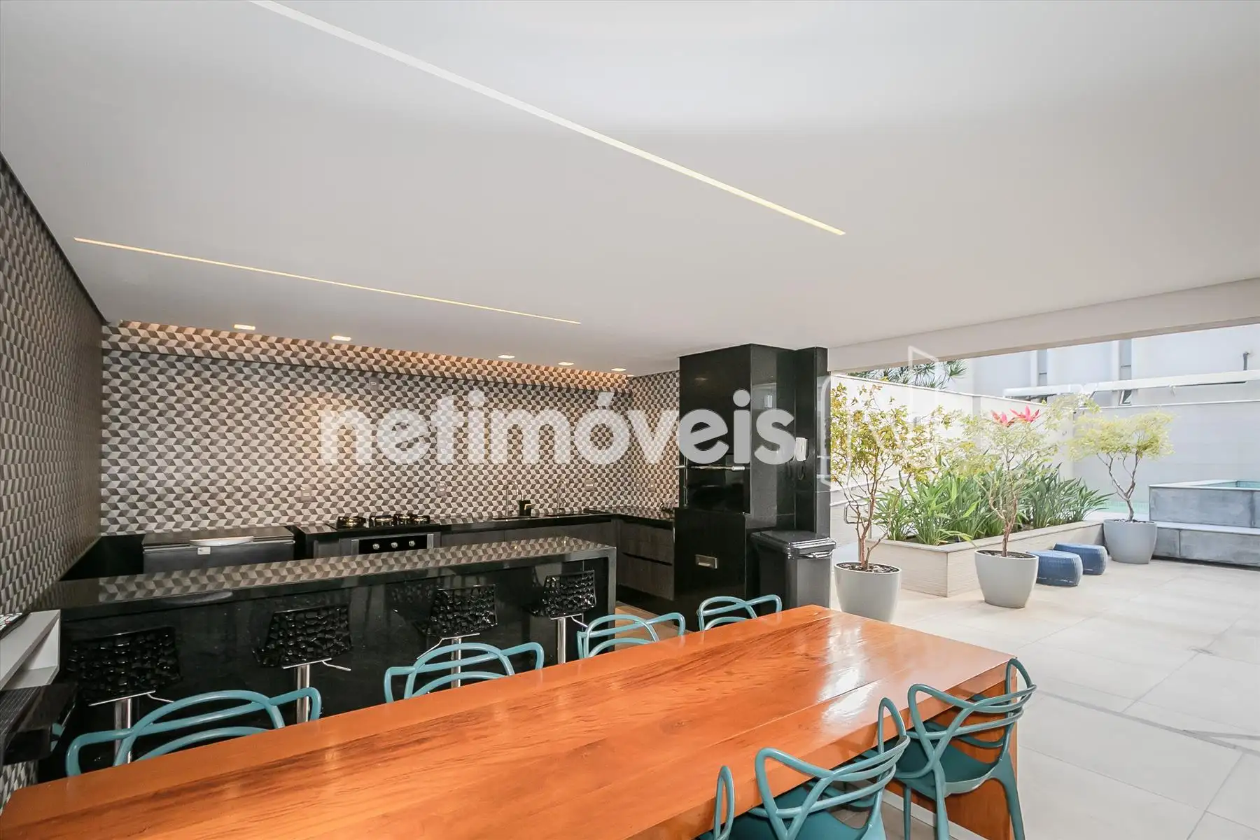 - Espaço gourmet com churrasqueira, pia e banheiros;