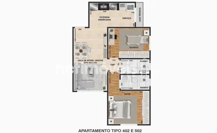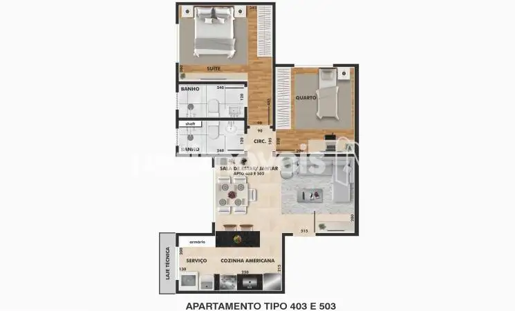 - Apartamento com sala para 2 ambientes, cozinha estilo americana com área de serviço, 2 quartos sendo 1 suíte, banho social e 2 vagas de garagem em linha. Piso em cerâmica nas salas e quartos, revestimento parcial nas áreas molhadas, preparação de laje técnica para ar-condicionado na suíte, tanque em louça, pias, lavatórios e bancadas em granito.