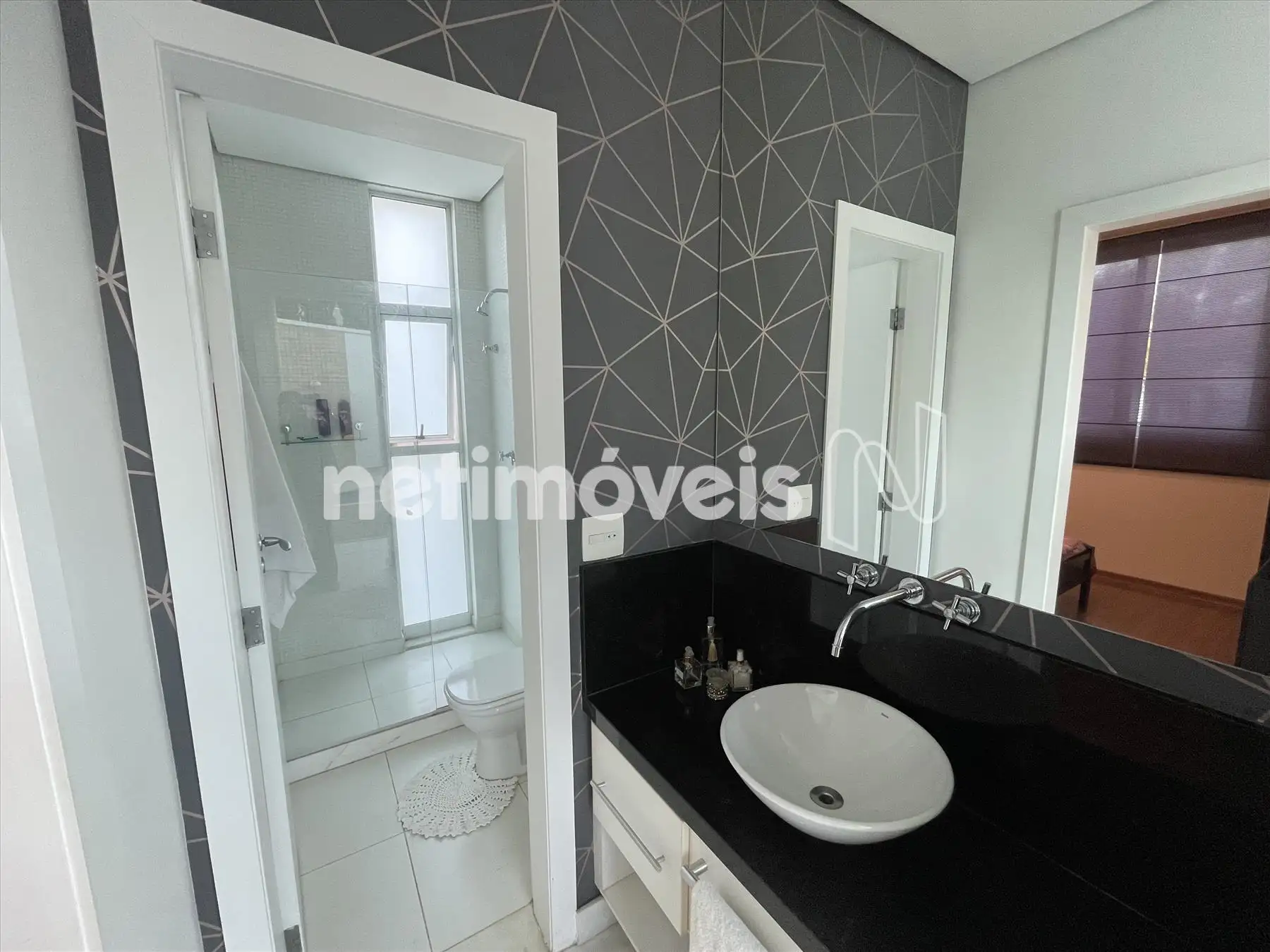 Suíte de hóspedes, cujo banheiro também pode ser usado como lavabo;