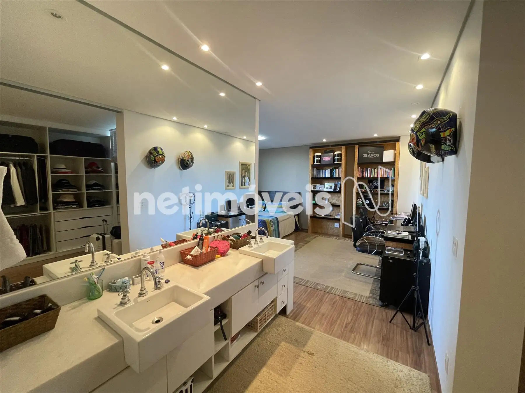 Suíte máster com closet e banheira de hidromassagem.
