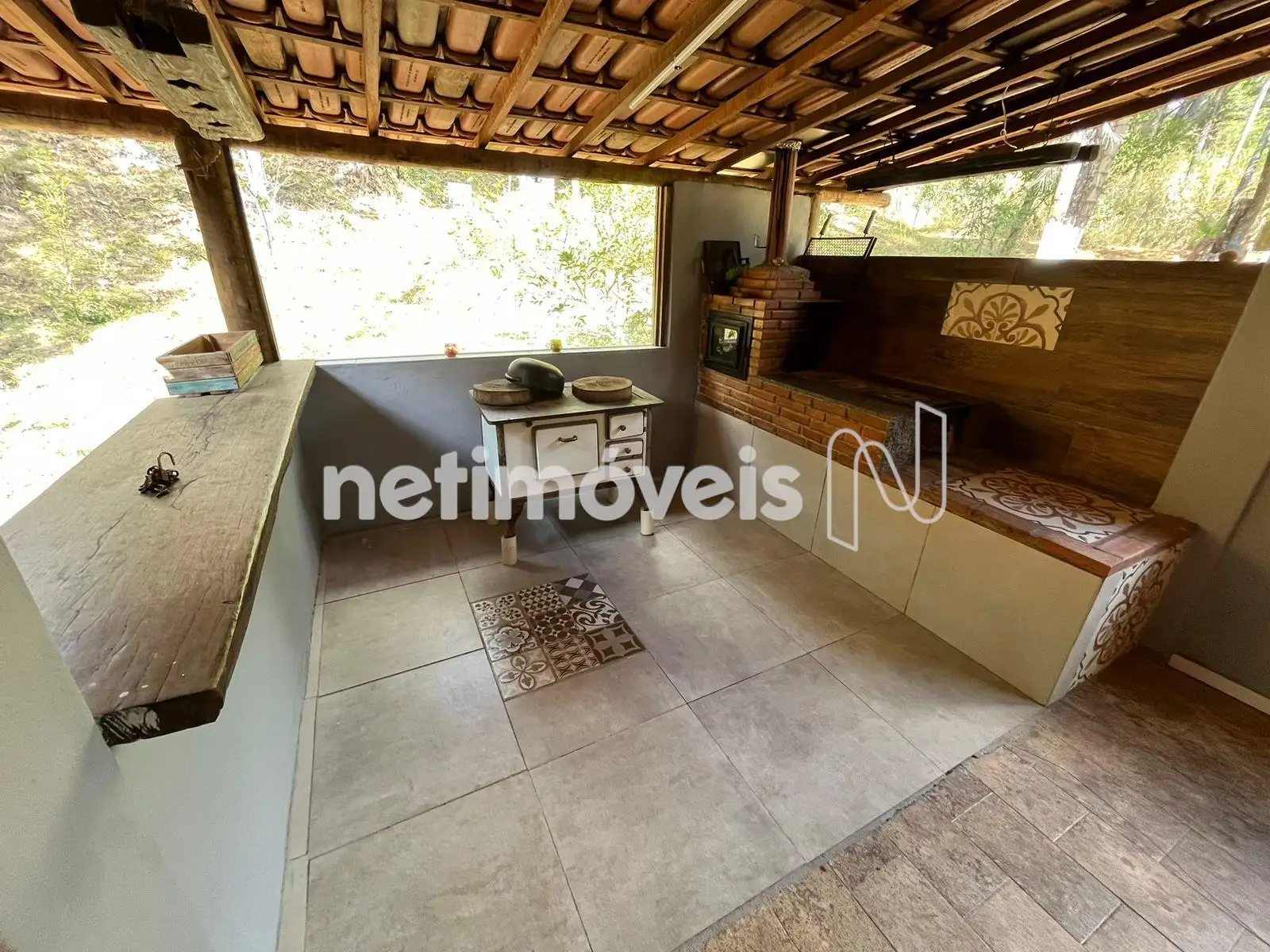 * Cozinha com fogão a lenha;