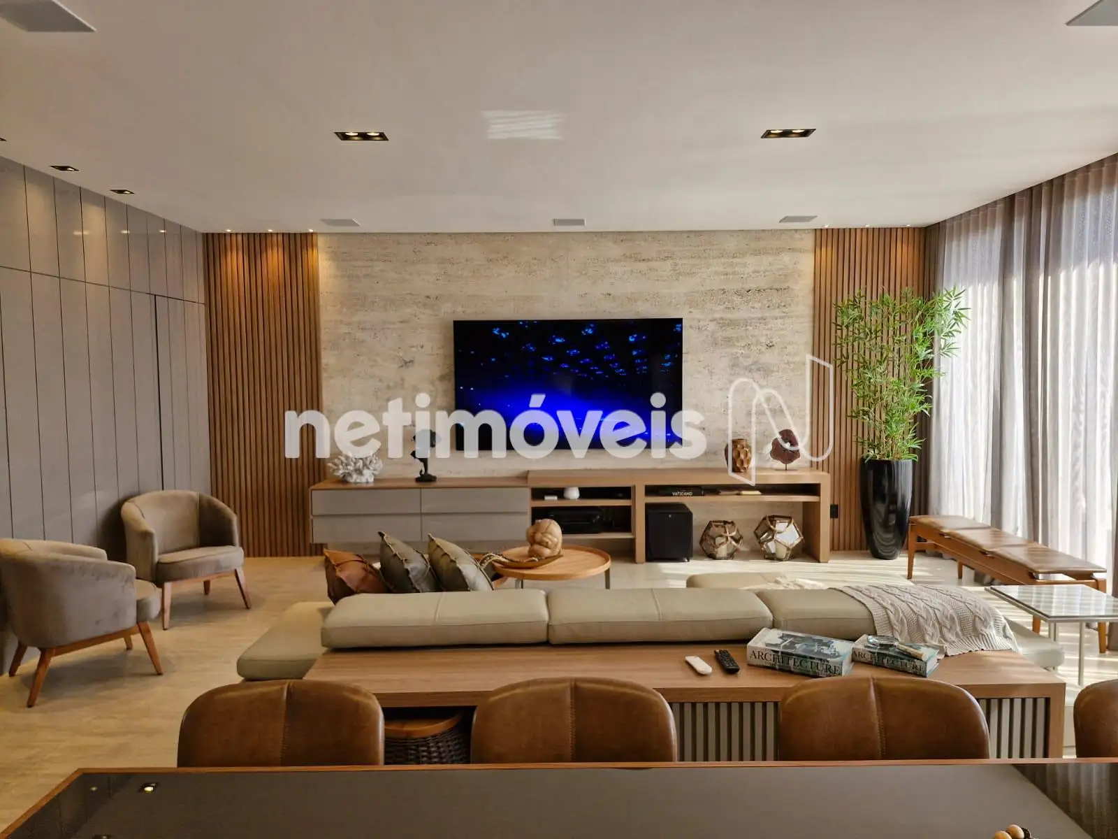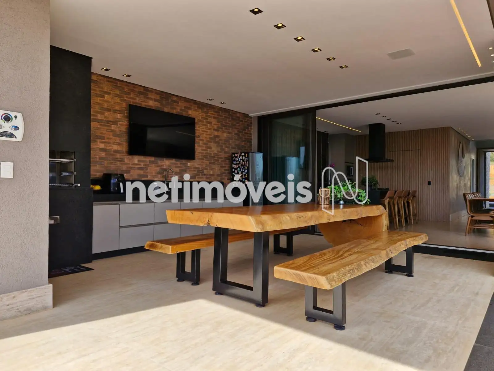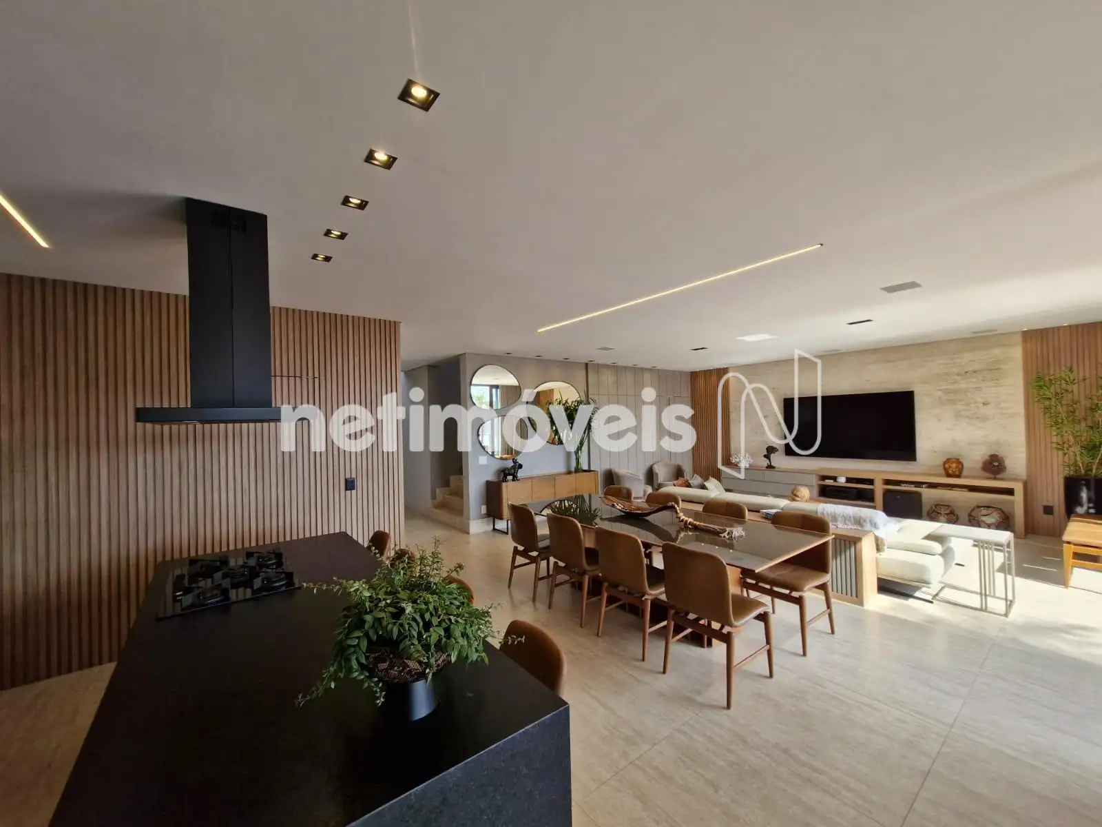 Com 393,95 m² de área construída interna, a residência apresenta acabamentos de alto padrão, marcenaria planejada em todos os ambientes, projeto luminotécnico sofisticado e paisagismo exuberante.