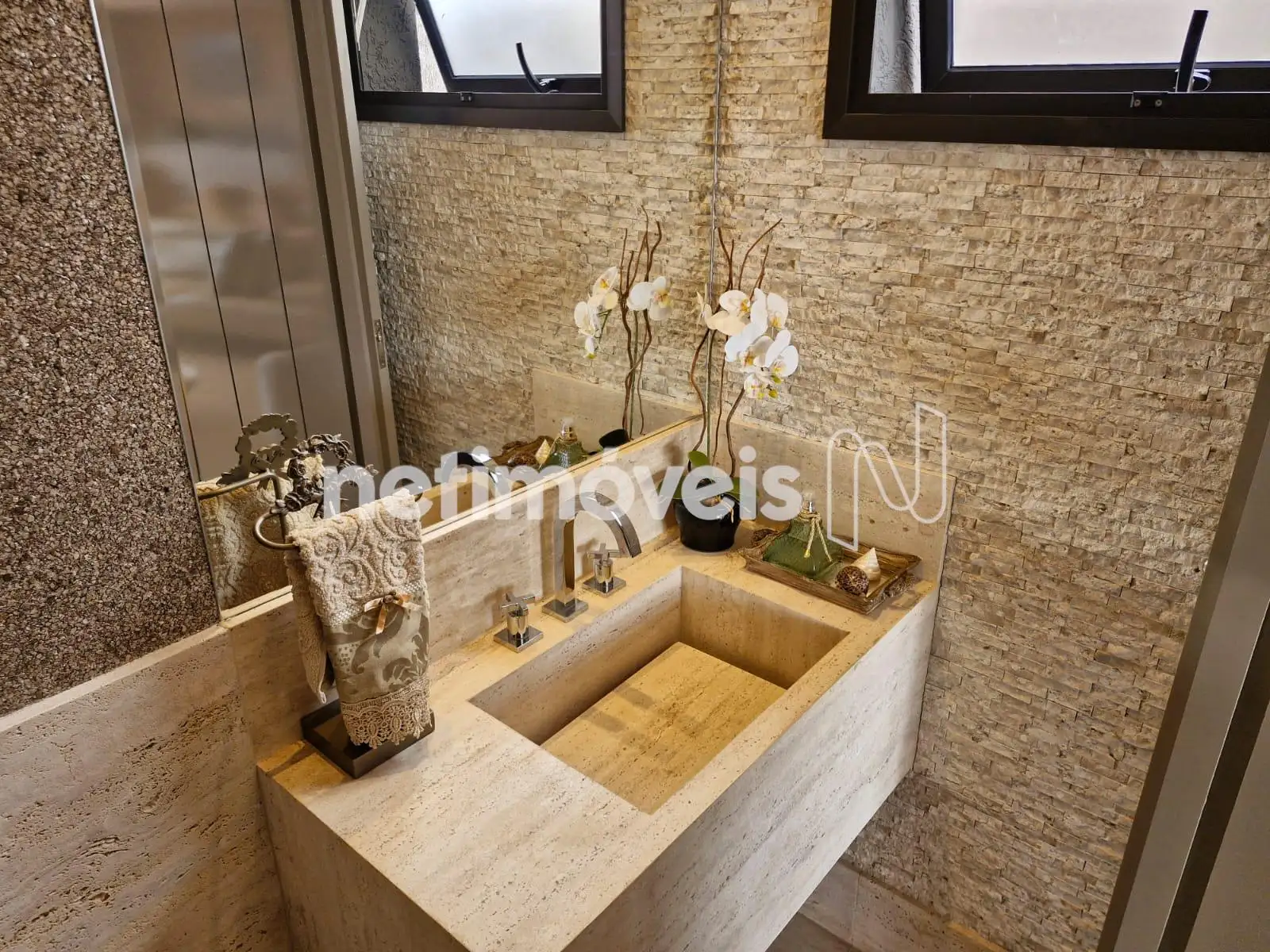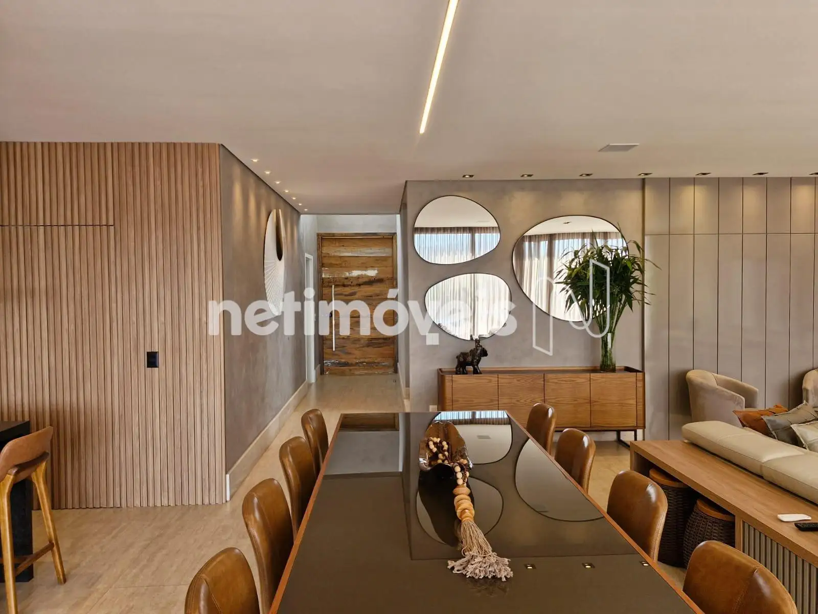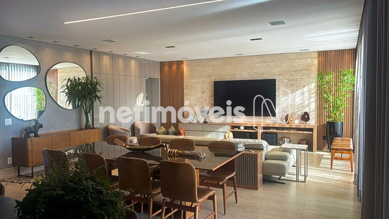 Com 393,95 m² de área construída interna, a residência apresenta acabamentos de alto padrão, marcenaria planejada em todos os ambientes, projeto luminotécnico sofisticado e paisagismo exuberante.