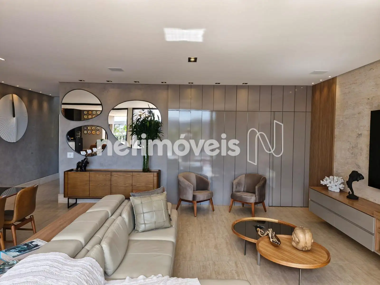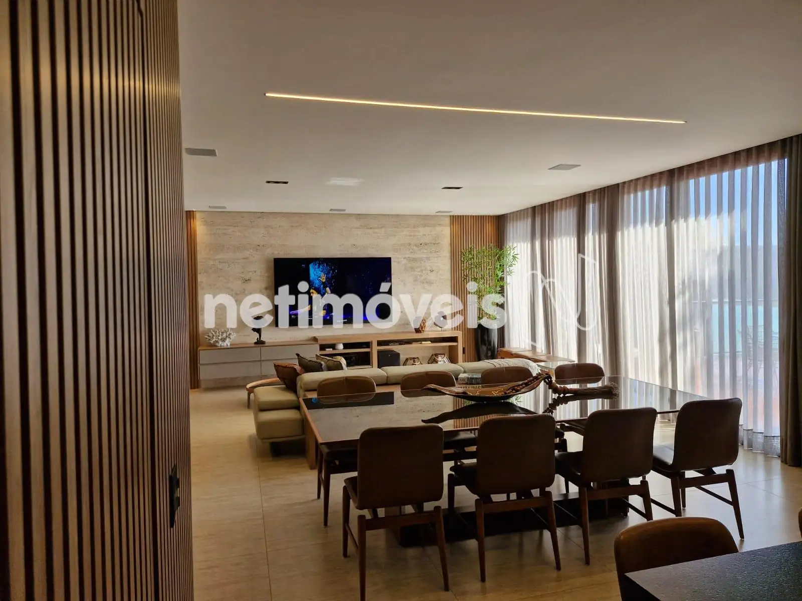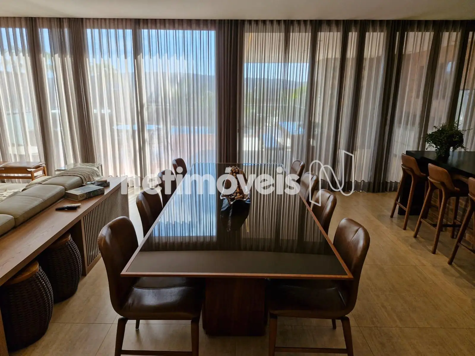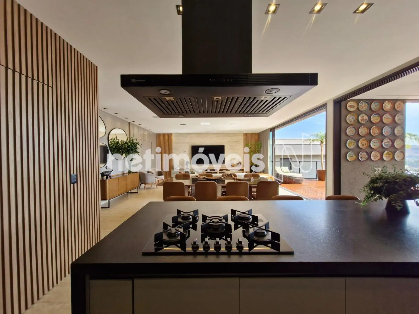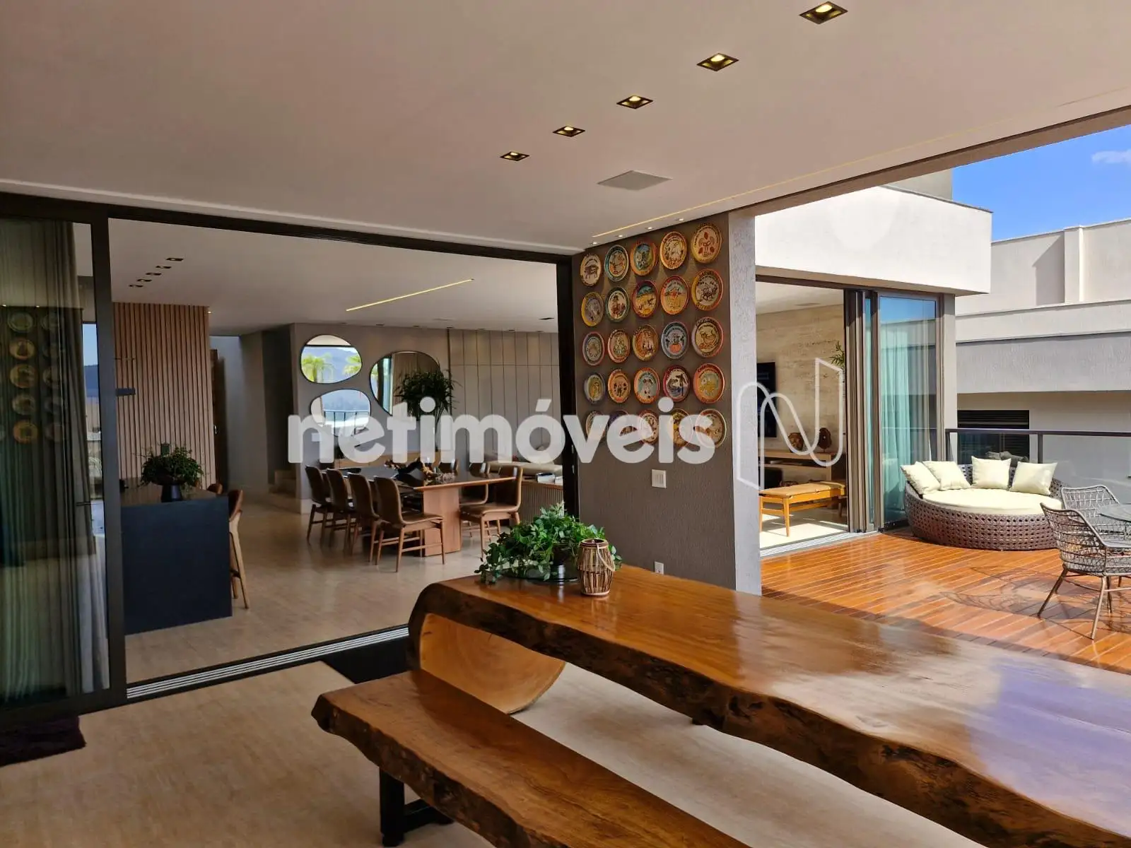 Sala ampla com lavabo, integrada à cozinha em estilo americano, ao espaço gourmet e à área externa com deck de 52,75 m², piscina de 20,59 m² e uma vista panorâmica de tirar o fôlego. A área social é ideal para momentos de lazer e convivência. Conta também com área de serviço com dependência completa de empregada e uma suíte para hóspedes.